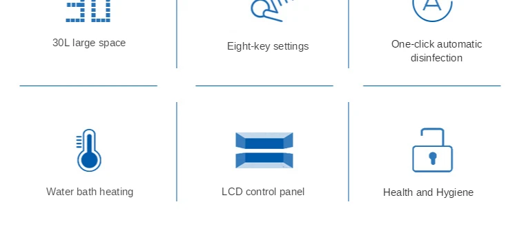 Функция стерилизации: Нажмите кнопку стерилизации и индикатор стерилизации светильник будет включаться, в то же время Индикатор нагрева светильник будет включаться, работа нагрева будет выполнена, нагрев будет автоматически нагреваться в соответствии с установленной температурой,