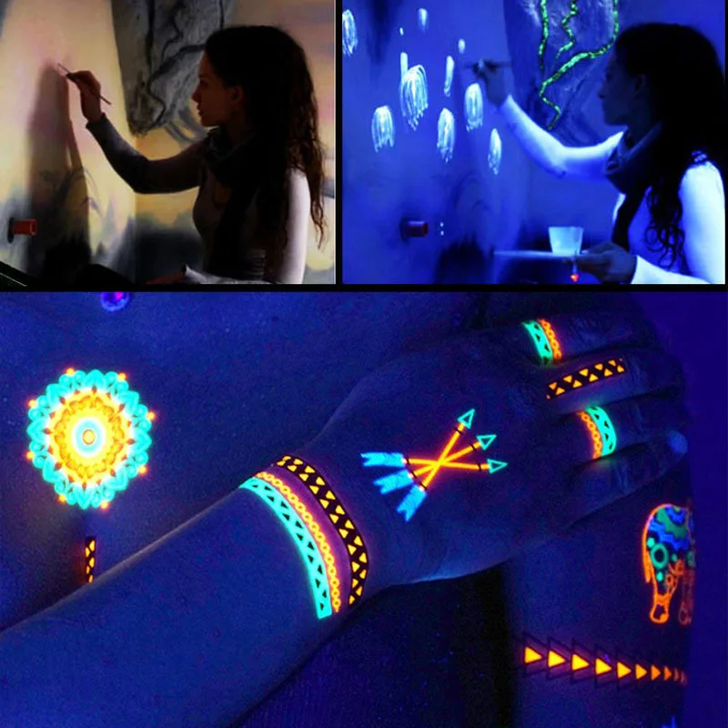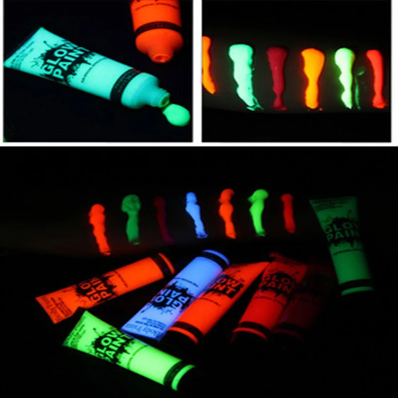 6 цветов Светящиеся в темноте краски для тела 10 мл УФ светящиеся краски для лица модный макияж для Хэллоуина Детская краска для лица УФ светящаяся краска