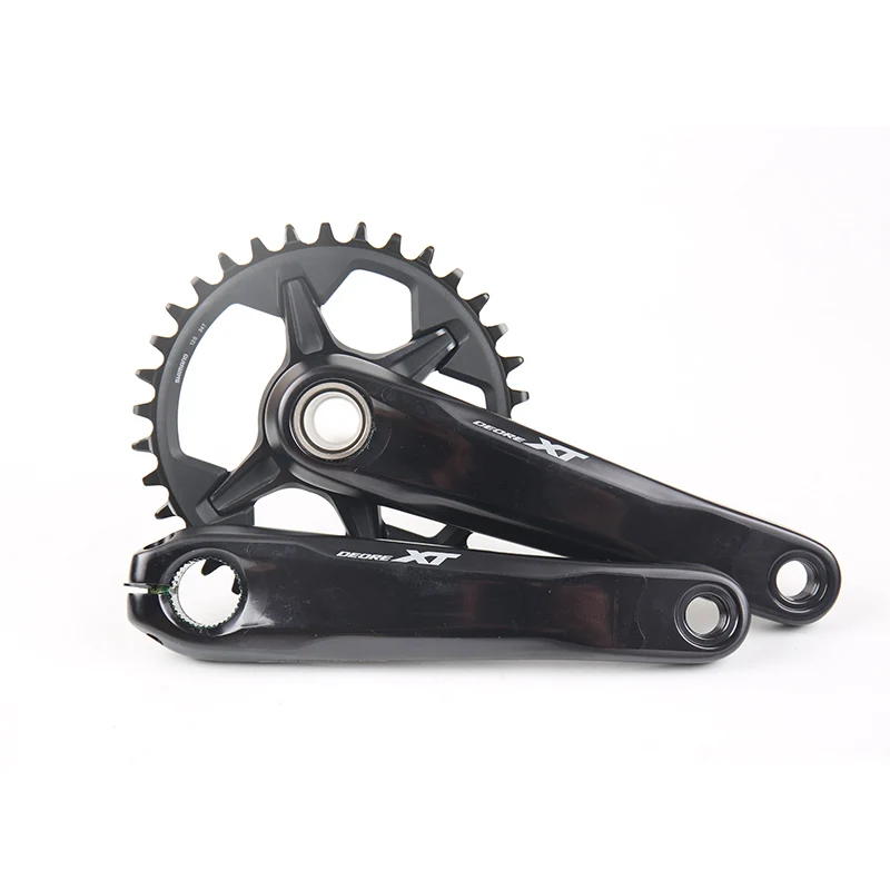 Кривошип SHIMANO DEORE XT FC-M8100-1 имеет совершенно новую конструкцию, с помощью прямого крепления цепных колец, специального зубчатого профиля для улучшения удержания цепи и q-фактора 172 мм.