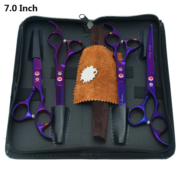 7,0 "JP440C Фиолетовый Дракон Черная собака стрижка ножницы набор для стрижки домашних животных режущие ножницы филировочные ножницы вверх и вниз изогнутые ножницы B0026B