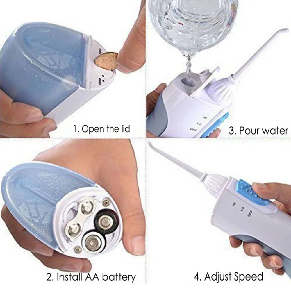 Функция: сильная пульсирующая струя воды выбрасывает частицы пищи, где зубная щетка не может достичь. Он также смывает Ослабленный налет из промежутков между зубами и мягко массирует десны.