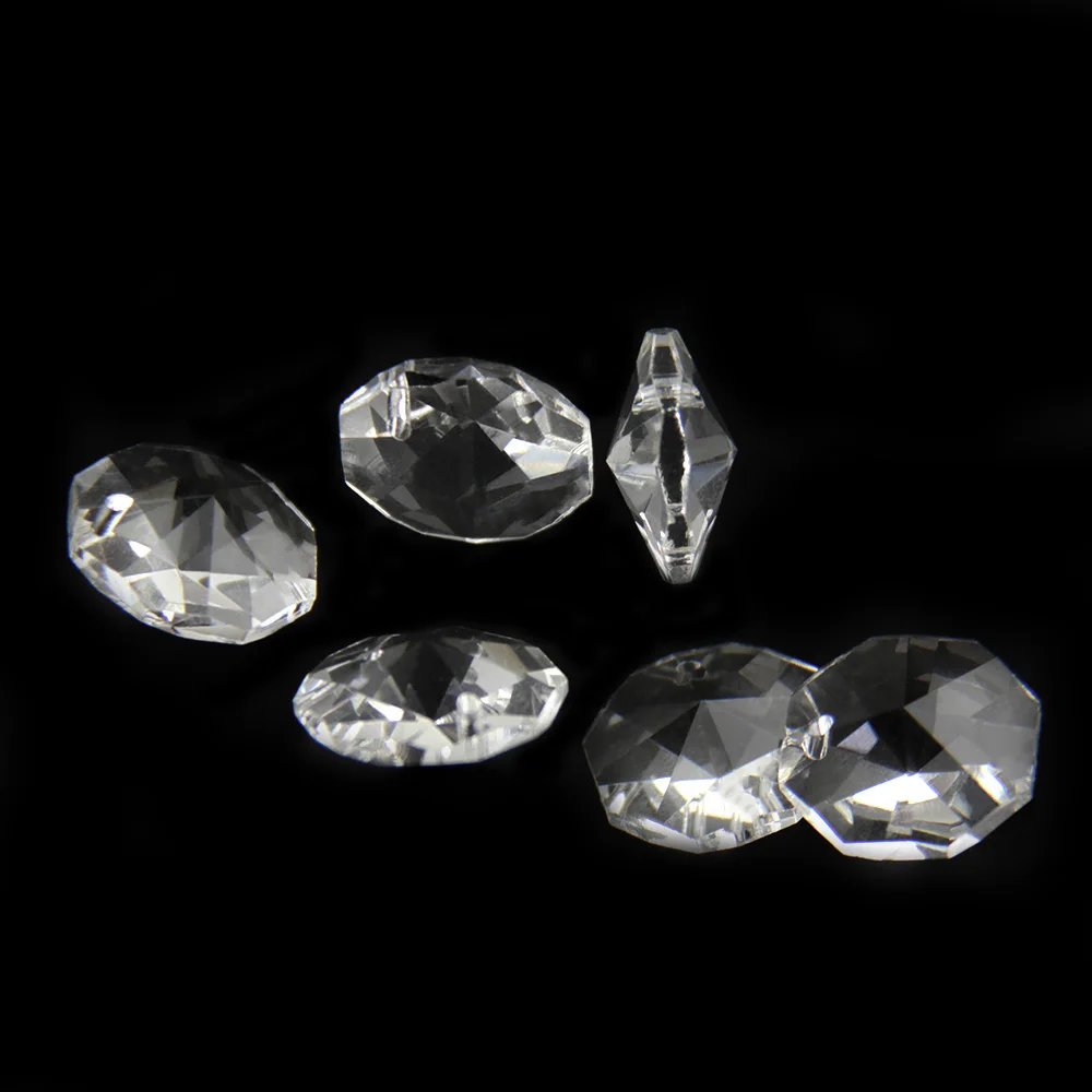 14 мм прозрачные цветные Восьмиугольные бусины для всех размеров в 1 отверстии/2 отверстия для частей люстры призмы