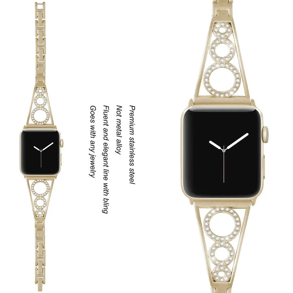 Блестящие часы, украшенные драгоценными камнями, ремешок для Apple Watch серии 4 3 2 1, блестящий круглый ремешок для iWatch 38 мм 42 мм 40 мм 44 мм