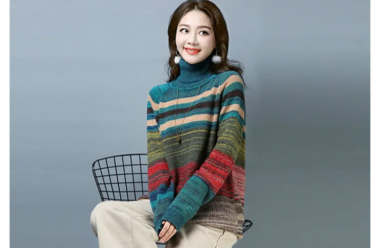Европейский модный полосатый теплый свитер