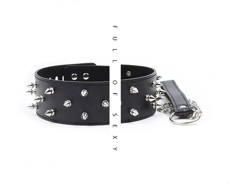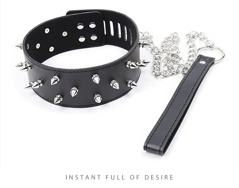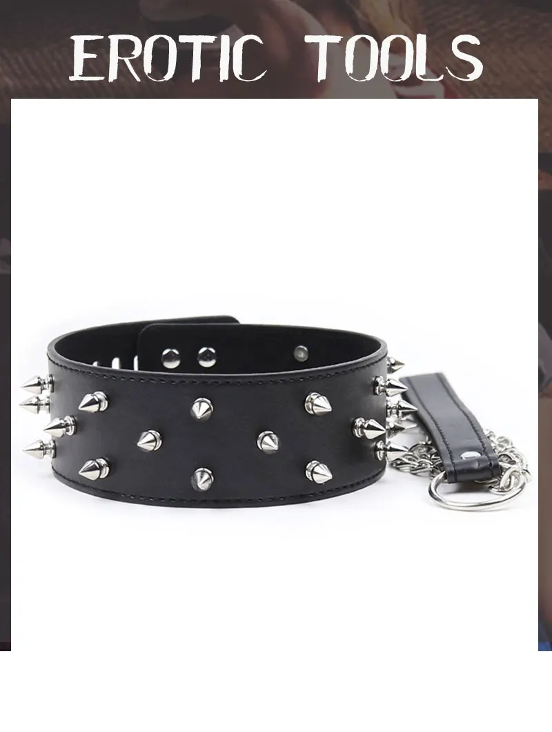 Для взрослых игр БДСМ Slave с заклепками кожаный ошейник поводок цепочка Металл Фетиш сдерживающий бондаж Для женщин Эротические Секс-игрушки для Coupl