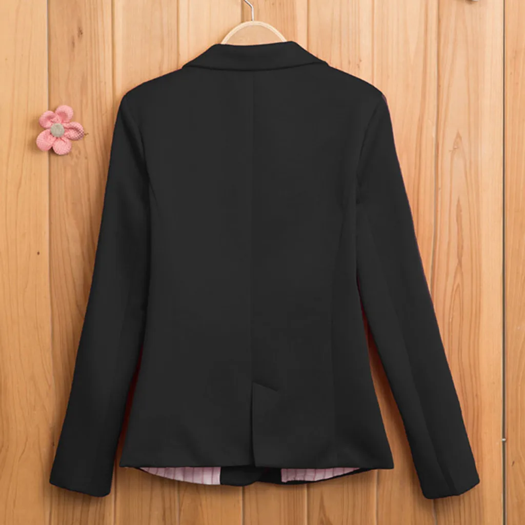 Женский Повседневный однотонный тонкий кардиган блейзер с длинными рукавами и пуговицами
