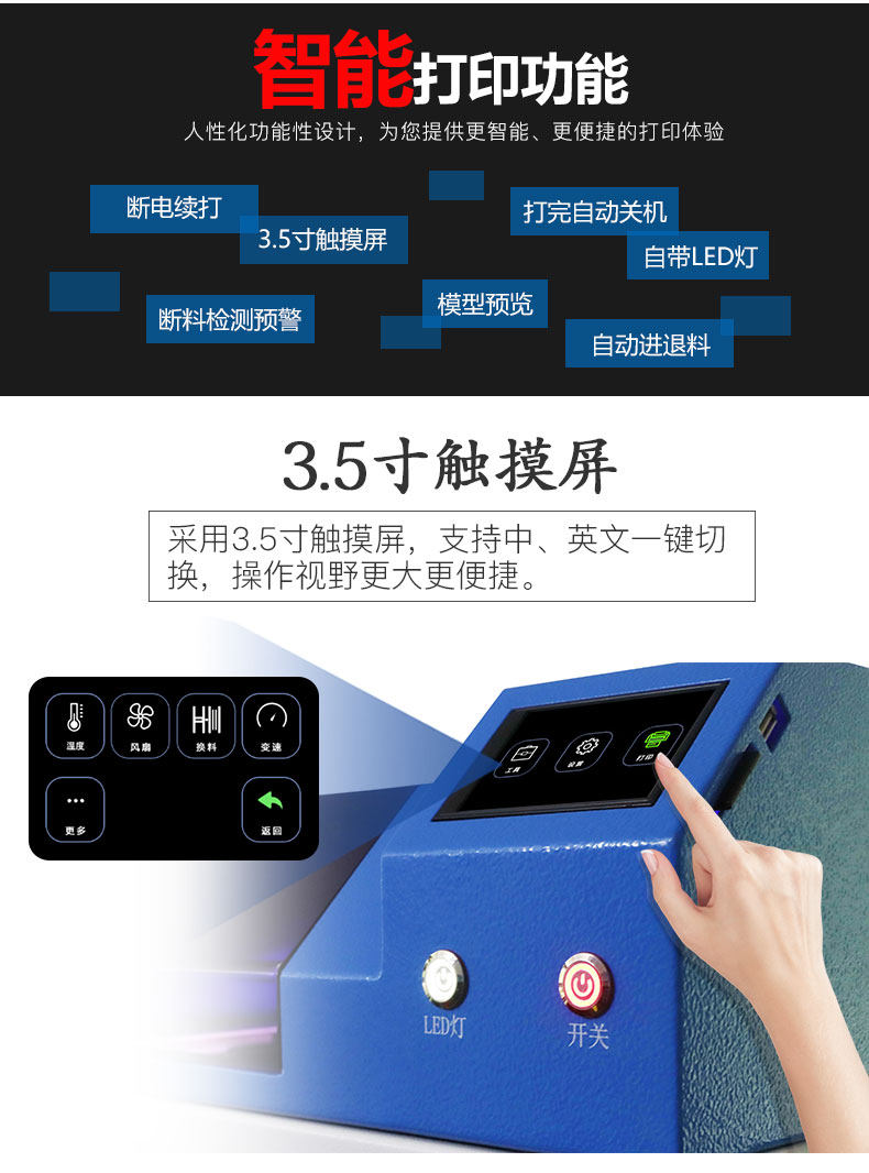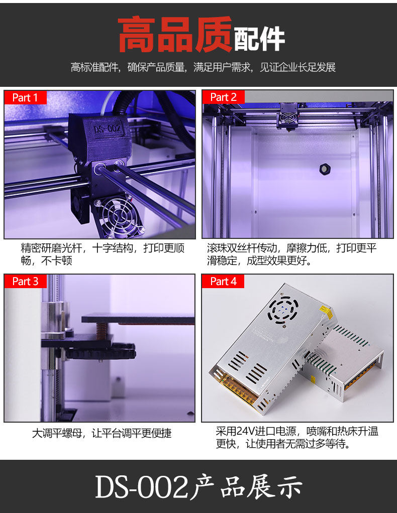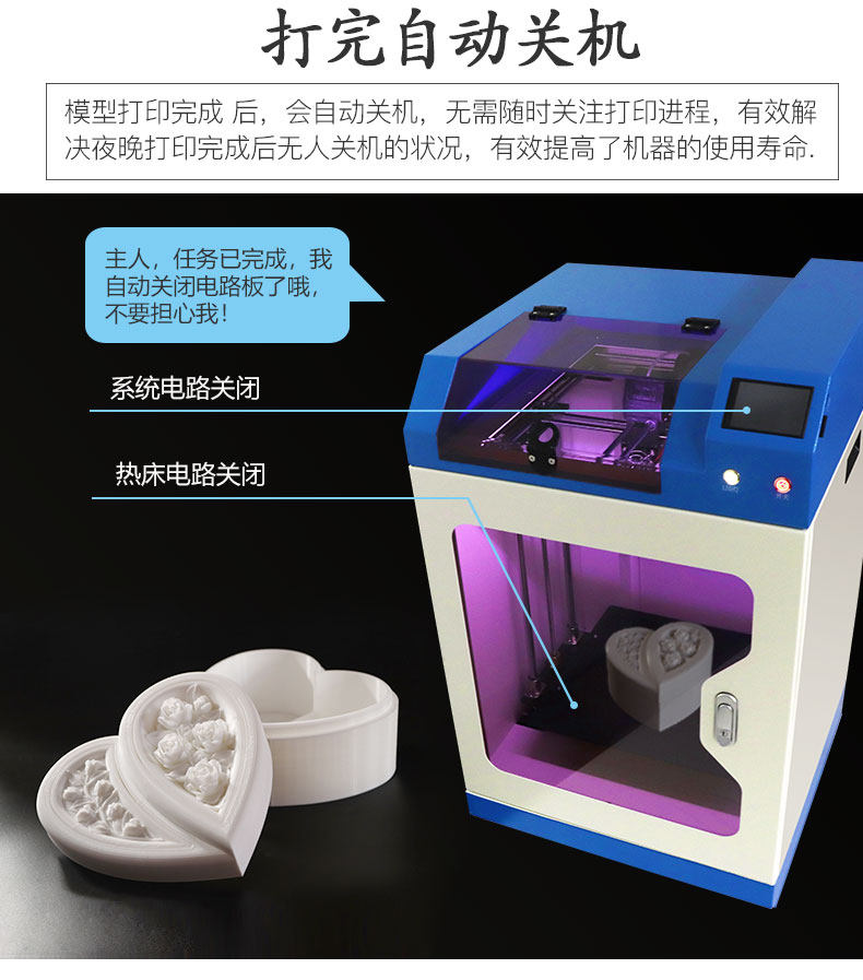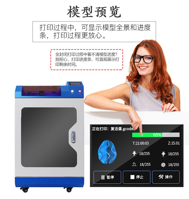 Технология: FDM Размер печати: 300x300x400мм Размер машины: 500x510x870мм Вес нетто: 48,5 кг Вес брутто: arounod 75 кг Скорость печати: 100 мм/сек. Точность печати: 0,1 мм Толщина слоя: 0,1-0,4 мм Точность позиционирования XY: 0,012 мм Нить: PLA, ABS, PC, PP, PE Диаметр нити: 1,75 Насадка: 0,4 Температура сопла: максимум 250 градусов Способ печати: SD карта, USB, U драйвер Экран langauge: английский Формат: stl, obj, g-код Программное обеспечение: Cura, Simplify3D Операционная система: Wins, Luxis, Mac Напряжение: 110-240 В, выход 24 В