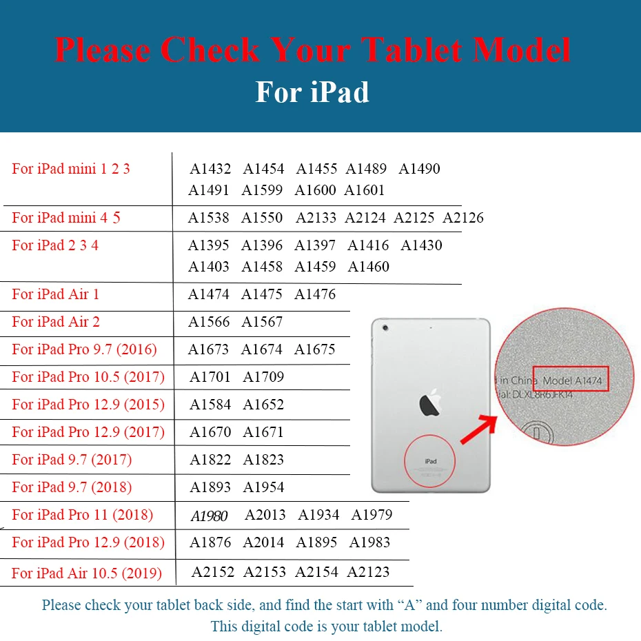 Друзья из России, пожалуйста, оставьте нам полное имя из-за российской политики, спасибо! * Описание товара> * Подходит только для iPad 5th 6th поколения 9,7 дюймов 2017 2018 (модель: A1822/A1823/A1893/1954) Информация для покупателей: Этот чехол не подходит для iPad Pro 9,7 ''2016 * Материал: Изготовлен из высококачественного материала из искусственной кожи. * Цвет: черный, темно-синий, розовое золото, золото * Посылка: 1 чехол + 1 bluetooth-клавиатура (мышь не входит в комплект) * Функция> 1. Чехол-книжка для планшета 2. Легко устанавливается и снимается 3. Защищает планшет от пыли и царапин 4. Гуманизированный дизайн, обеспечивает комплексную защиту вашего устройства Примечание: Вся клавиатура на английском языке, мы можем бесплатно напечатать язык на английской клавиатуре. Русский, испанский, португальский, французский, Арабская, Корейская, японская, Турецкая, немецкая, тайская, иврит, итальянский (после размещения заказа можно оставить язык, который вам нужен. Спасибо)