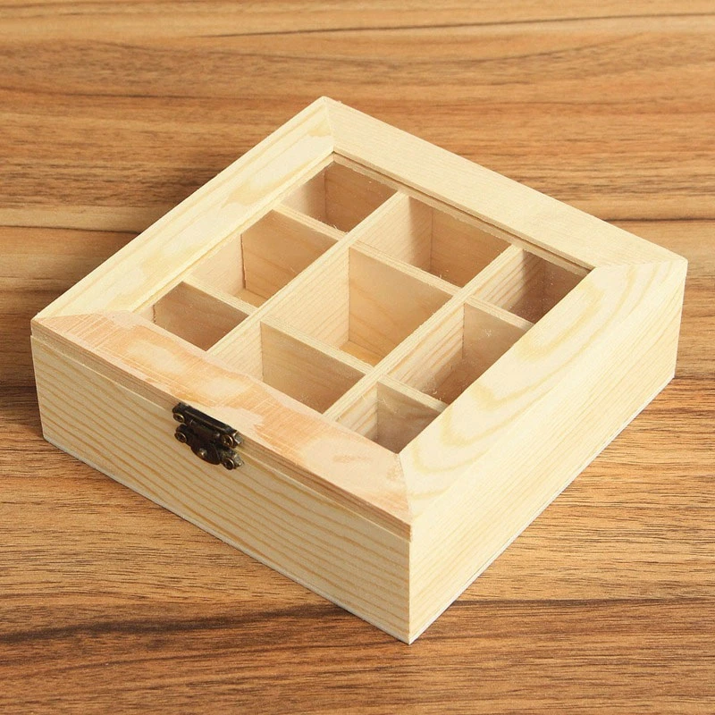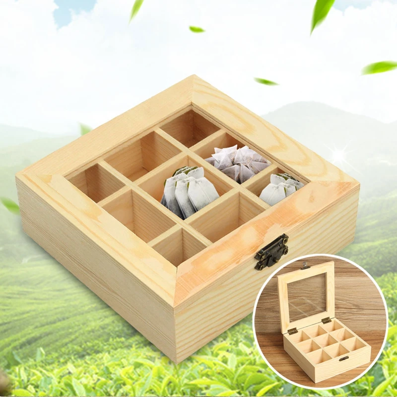 Деревянный чайный мешок, органайзер для ювелирных изделий, коробка для хранения, 9 отсеков, чайный ящик, органайзер, деревянный пакет сахара, контейнер