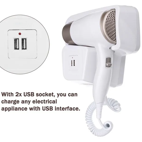 220 В 1300 Вт 2 режима Регулируемая Usb розетка настенный тип Электрический отель дома ванной фен держатель салон волос выдувание