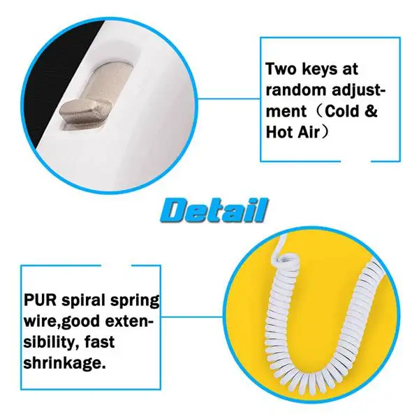 С разъемом USB 2x можно заряжать любое электрическое устройство с интерфейсом USB. Более безопасный, чем Линия электропередачи Сопротивление сжатия, устойчивость к падению, устойчивость к высоким Температура, отличная твердость Сильный ветер, низкий уровень шума и рассеивание тепла Компактный размер удобен для путешествий и хранения Функция гидратированных ионов, не сушить волосы, мягкие и глянцевые. Утолщенная и растягивающаяся спиральная пружинная проволока PUR (полиуретан) с огнезащитным, кислотным и щелочным сопротивлением, высокой термостойкостью, износостойкостью, анти-гидролиз и другими функциями, хорошая растяжимость, быстрая усадка, длина до 1,6 м Напряжение: 220 В Мощность: 1300 Вт Частота: 50 Гц Шестерня: 2 регулируемые шестерни (холодный и горячий воздух) Источник питания: электрический Применение: гостиничный номер, центр отдыха, спортивный центр, бассейн, сауна, дом и так далее Тип штепсельной вилки: штепсельная вилка европейского стандарта, применяется в Индонезии, Германии, Франции, Испании, Италии и т. д. Размер: 24*17,5*16 мм Материал: пластик Цвет: белый Посылка: 1 * фен (с европейской стандартной вилкой) 1 * Руководство пользователя 1 * картонная упаковка Только вышеуказанная посылка, другие товары не включены. Примечание: светильник и различные дисплеи могут привести к тому, что цвет товара на картинке немного отличается от реального. Допускается погрешность в измерениях +/- 1-3 см.