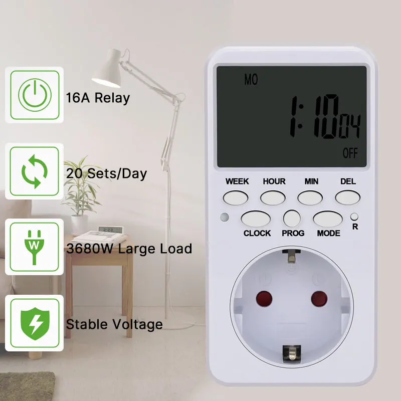 Особенности: 1. Применение: рисовые плиты, диспенсеры для воды, нагреватели, жидкий Электрический фумигатор и другие электрические приборы, электрические батареи для транспортных средств, зарядное устройство для цифровой камеры, зарядное устройство для смартфона, безопасность дома и т. д. 2. С случайной функцией и функцией изменения летнего времени s. 3. Встроенный аккумулятор для запоминания программы. 4. Время установки включает час, минуту и неделю. 5. Высокая точность и сильная защита от помех. 6. ЖК-дисплей для легкого и четкого чтения. Технические характеристики: Программы 20 ВКЛ/ВЫКЛ 7 рабочих кнопок. Цвет: белый Материал: АБС + ПК Тип штекера: штепсельная вилка европейского стандарта Мощность: 230 В ~ 50 Гц Выход: Макс. 16А 3600 Вт Батарея в режиме ожидания: 120 дней Минимальное время настройки: 1 минуту Рабочая температура:-10-55 Цельсия Точность: +/-1 мин/Пн. Батарея: NIMH 1,2 в (встроенный аккумулятор, несъемный) Размеры: прибл. 11,5*5,7*8 см ЖК-экран: около 2,36 дюймов Посылка включает в себя: 1 * подключаемый таймер Добро пожаловать дропшиппинг и оптовые заказы 1) дропшиппинг: отправляется быстро, без счета-фактуры или какой-либо рекламной информации, действующий идентификационный номер, быстрая доставка. 2) Оптовая продажа: больше скидок для оптовых заказов. При возникновении любых проблем, пожалуйста, свяжитесь с нами в первый раз, мы постараемся сделать все возможное, чтобы помочь вам решить эту проблему, спасибо за сотрудничество.
