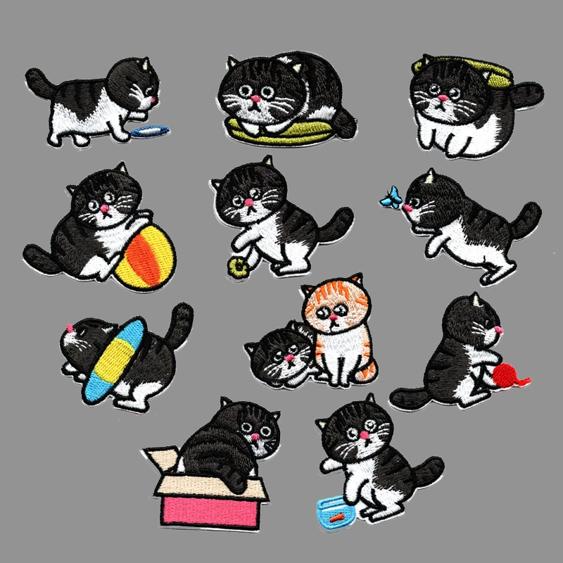 Милые забавные нашивки для кошек, высокое качество, 3D вышивка, нашивки для одежды, тканевые наклейки, железные нашивки, значки, джинсы, карманные аппликации
