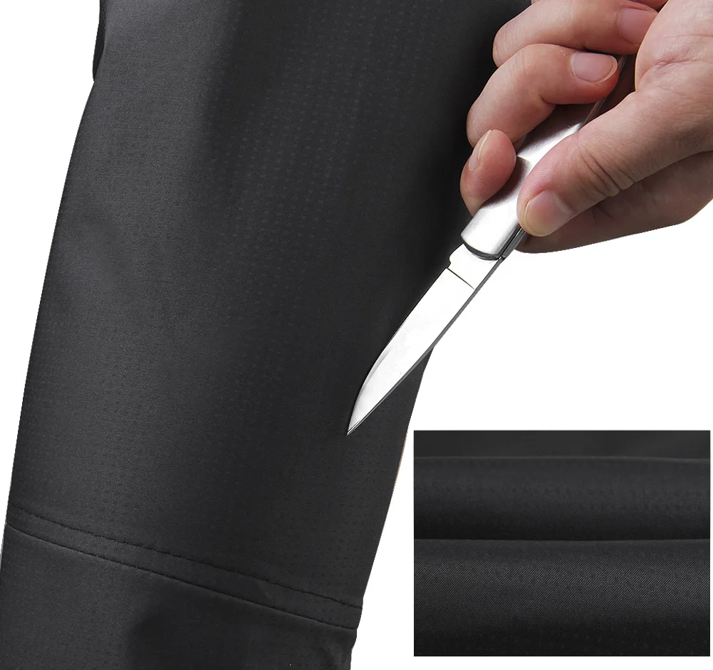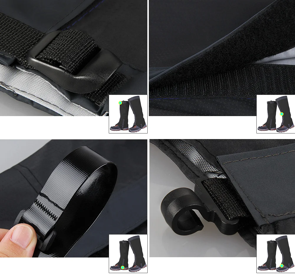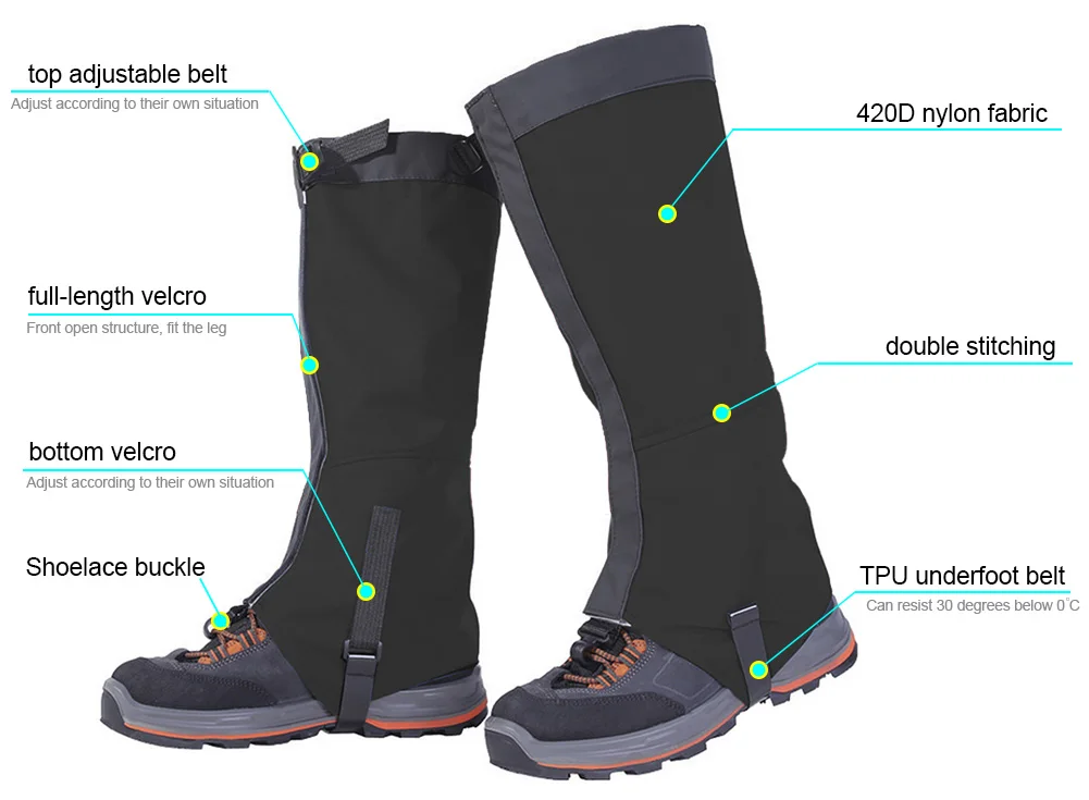 1. Высококачественная нейлоновая ткань является водонепроницаемой, прочной, ветрозащитной, износостойкой и дышащей, эффективно защищает ногу от дождя, снега, пыли, ветра, укуса насекомых и т. Д.
