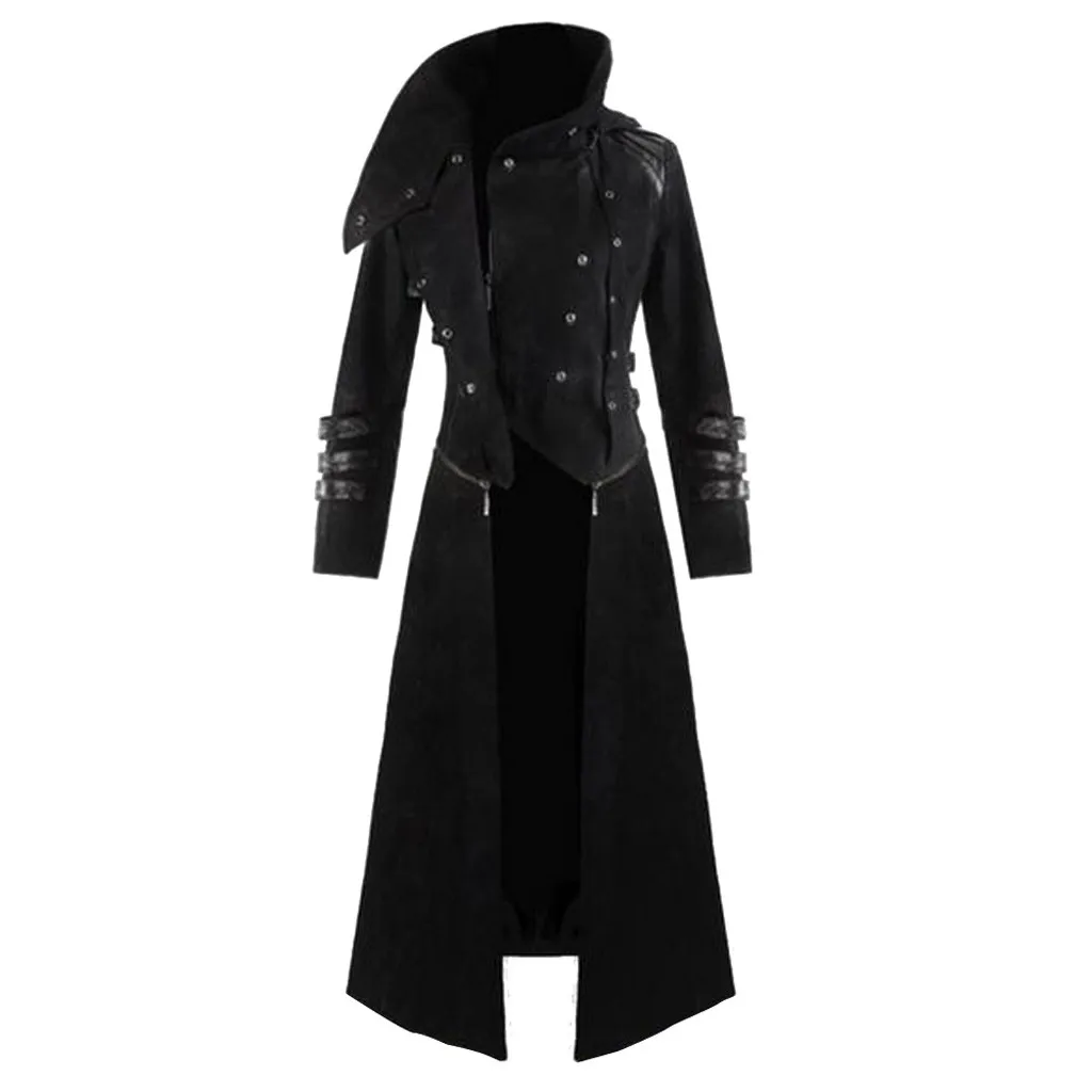 Модный мужской Готический Тренч с капюшоном; Вечерние костюмы; Фрак; Куртка с длинными рукавами