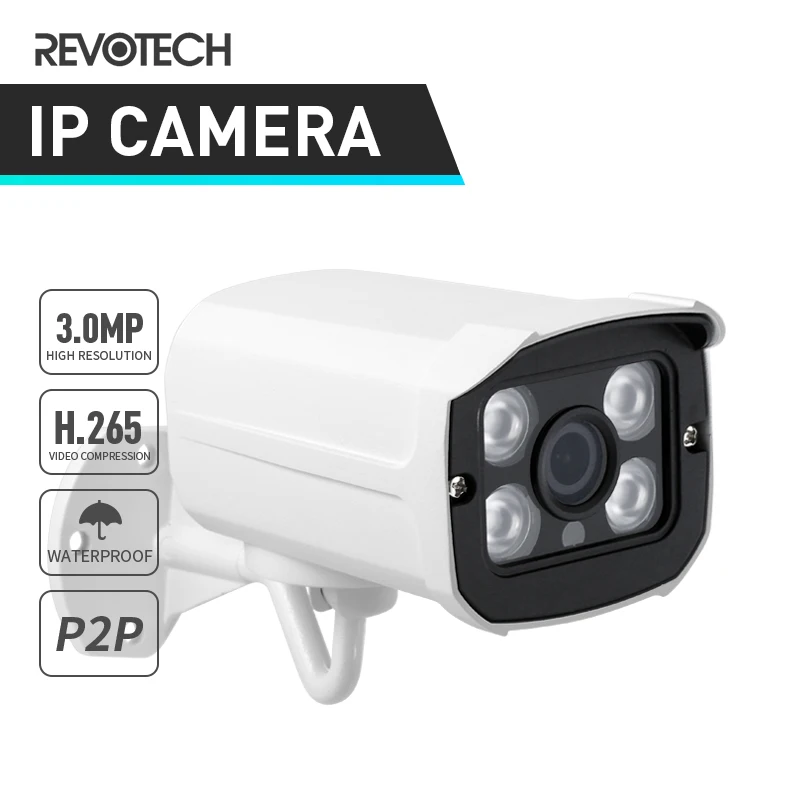 H.265 HD Водонепроницаемая 3-мегапиксельная наружная ip-камера 1296P / 1080P 4 Массив светодиодный цилиндрическая камера безопасности ONVIF ночное видение P2P CCTV камера