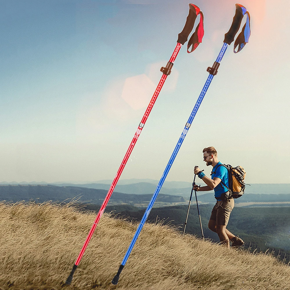 2019 открытый складной треккинговые палки, светильник, короткий наружный замок, алюминиевый сплав, трость для пеших прогулок, оборудование для альпинизма (15-40)