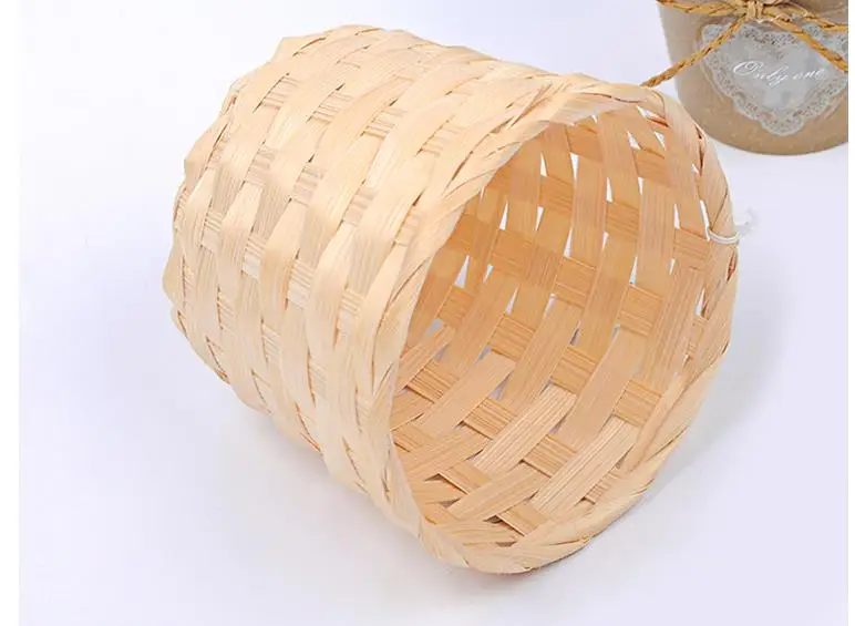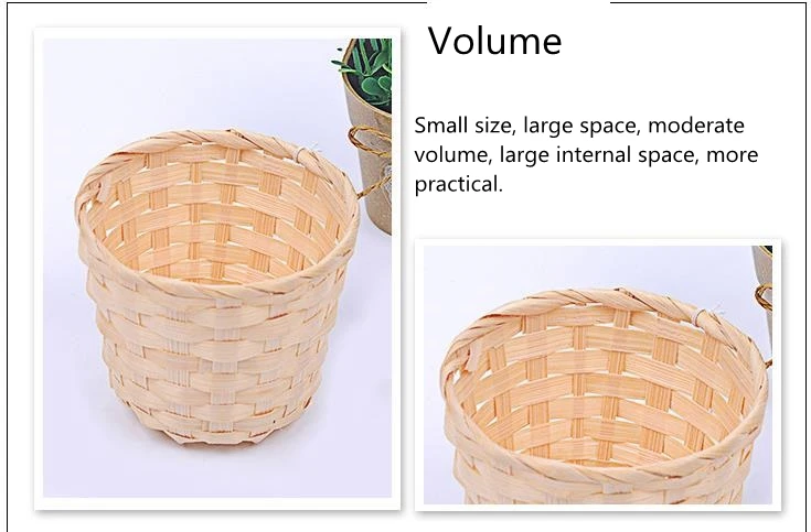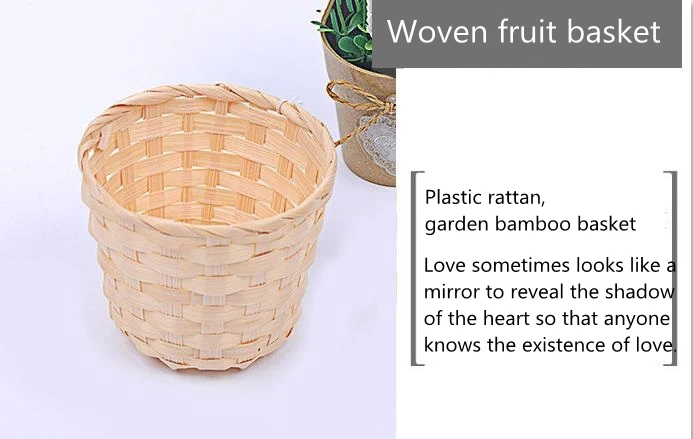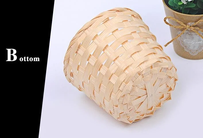 1. Название: плетеная корзина для цветов 2. Материал: бамбук 3. Область применения: цветочная корзина, маленький синий бамбук 4. Производственный процесс: ручная работа 5. Характеристики: S: диаметр 7,5 см, высота 6 см; L: диаметр 9 см, высота 7,5 см 6. В комплект входит: упаковка из 4 или 10 штук.