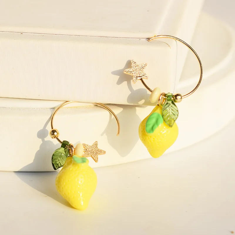 Корейские новые серьги с фруктами для женщин, летние милые серьги с кисточками с лимонами, серьги с золотыми звездами, модные серьги-подвески, ювелирные изделия