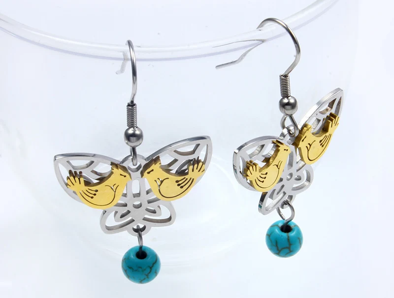 Серебряные и золотые серьги из нержавеющей стали, ювелирные изделия для женщин, Разноцветные серьги-бабочки, аксессуары для птиц, голубой натуральный камень