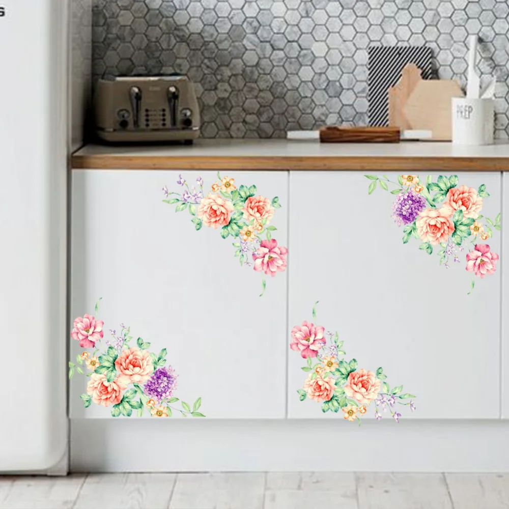 Наклейки на стену пионы Цветы Наклейки на стены гардероб Туалет цветы холодильник Ванная комната Декор стены для домашнего декора подарок, 1 шт.
