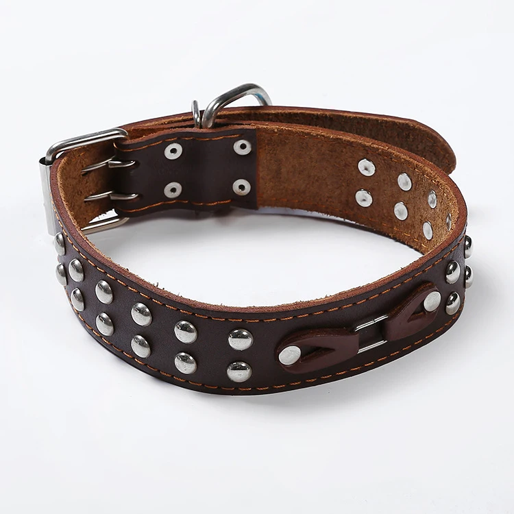 Взрывозащищенный собачий ошейник большого размера с заклепками из натуральной кожи, Большой собачий ошейник, регулируемый ошейник из натуральной кожи, тренировочный 4,0 см Ширина
