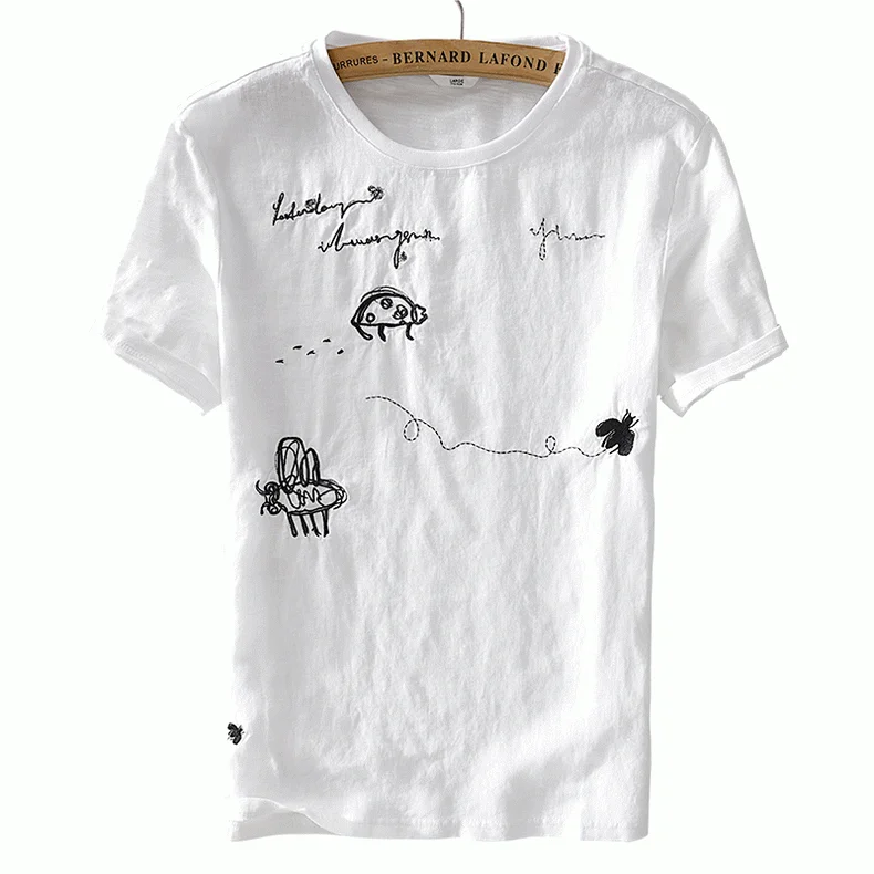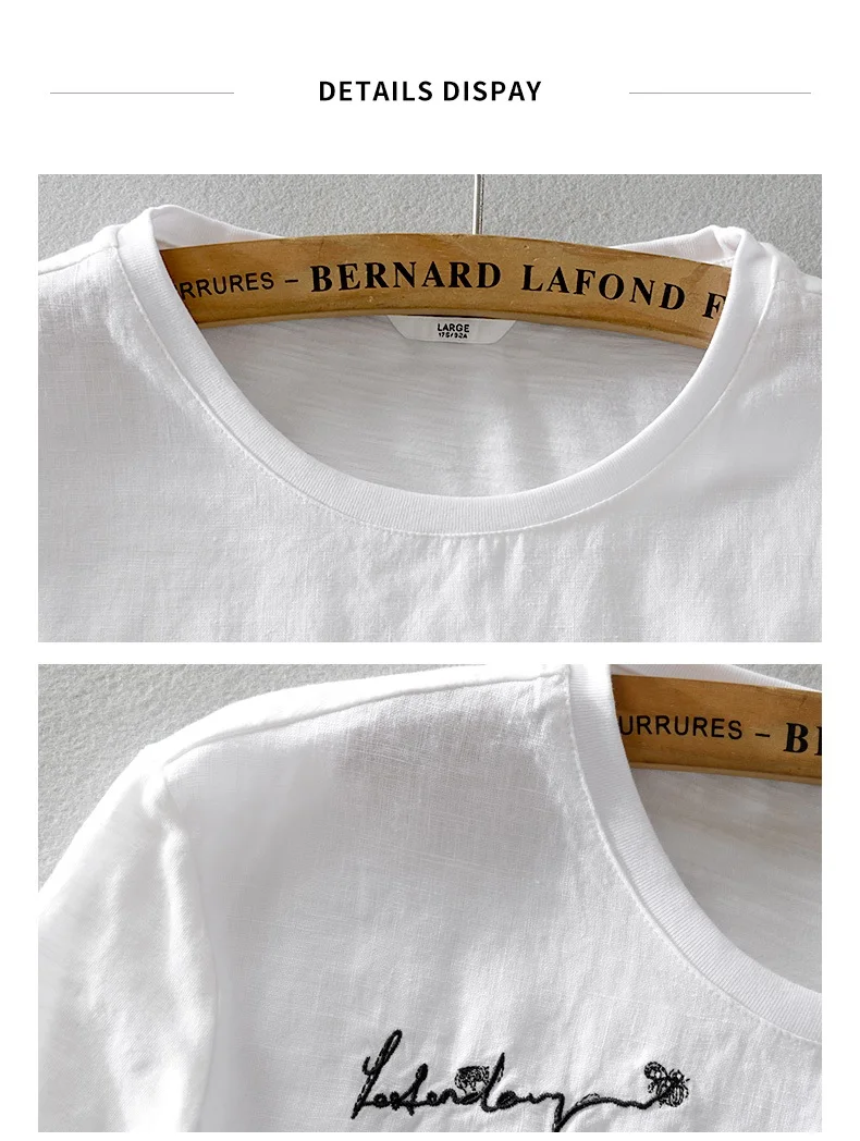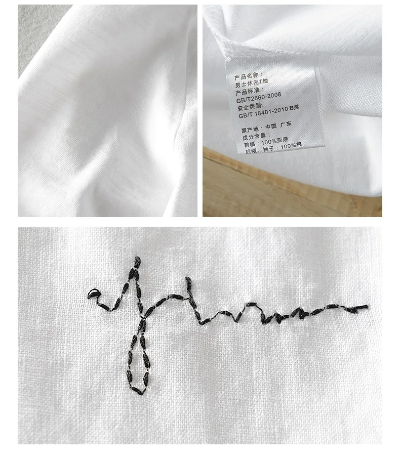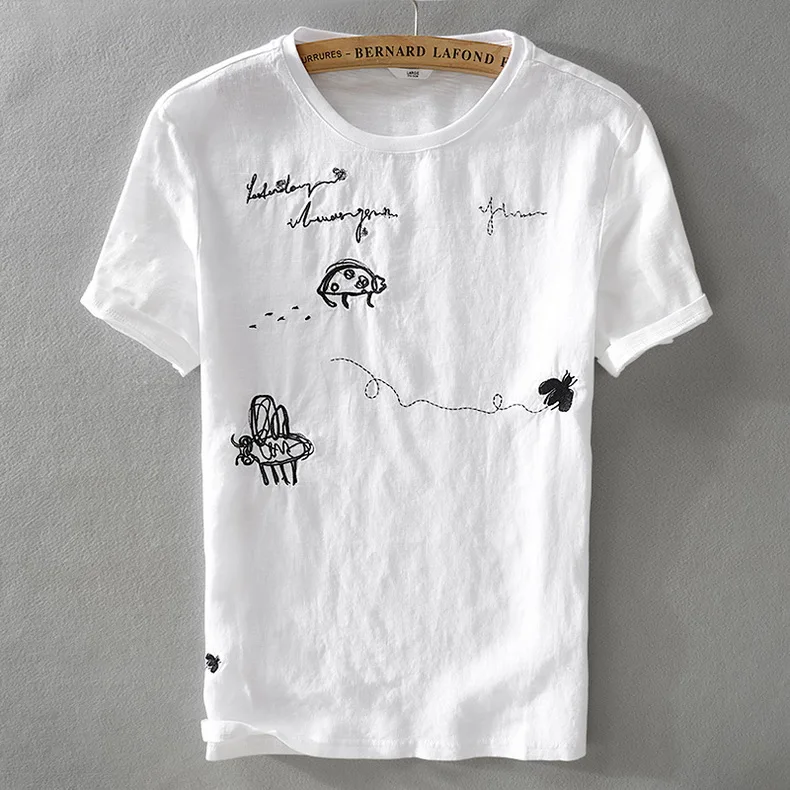 Крутая летняя хлопковая и льняная футболка, Мужская брендовая белая футболка для мужчин, модная футболка с круглым вырезом, мужская вышитая Футболка, сорочка