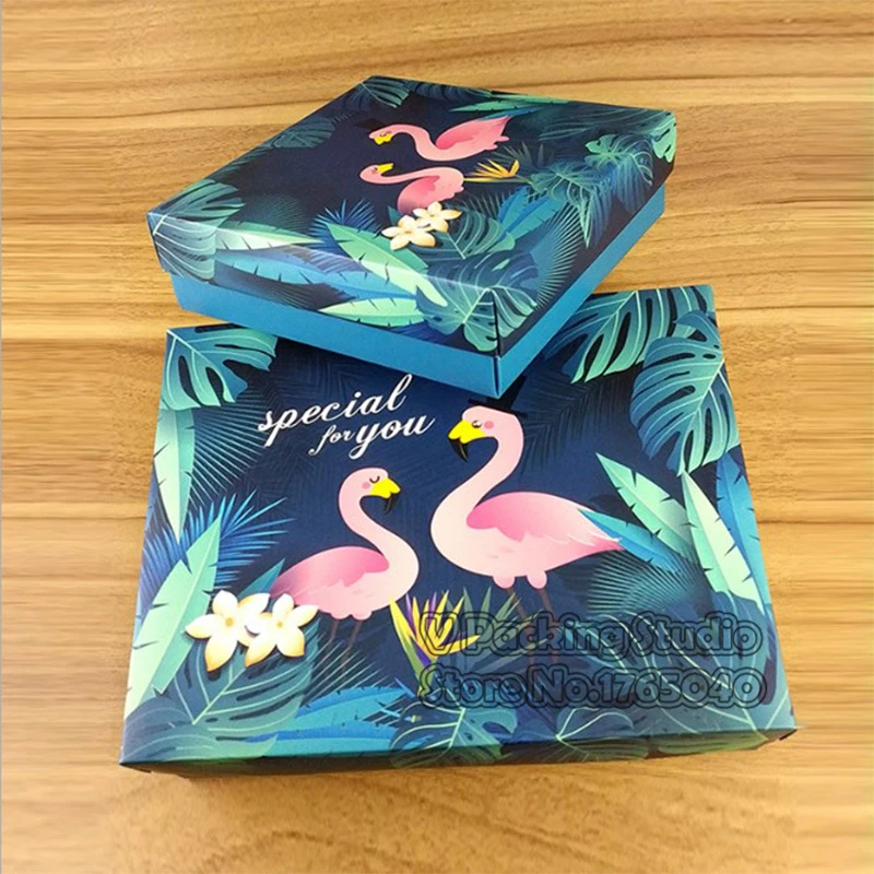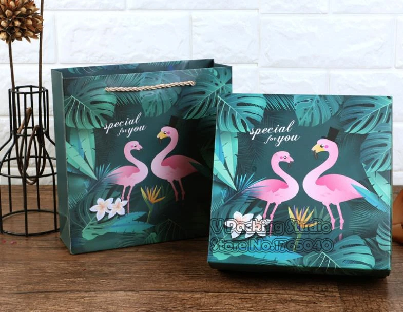 20x20x6,5 см зеленый лист Фламинго подарочная коробка. Mooncake конфеты коробка для печенья, подарочные мешочки под конфеты бесплатная раздача подарок коробки