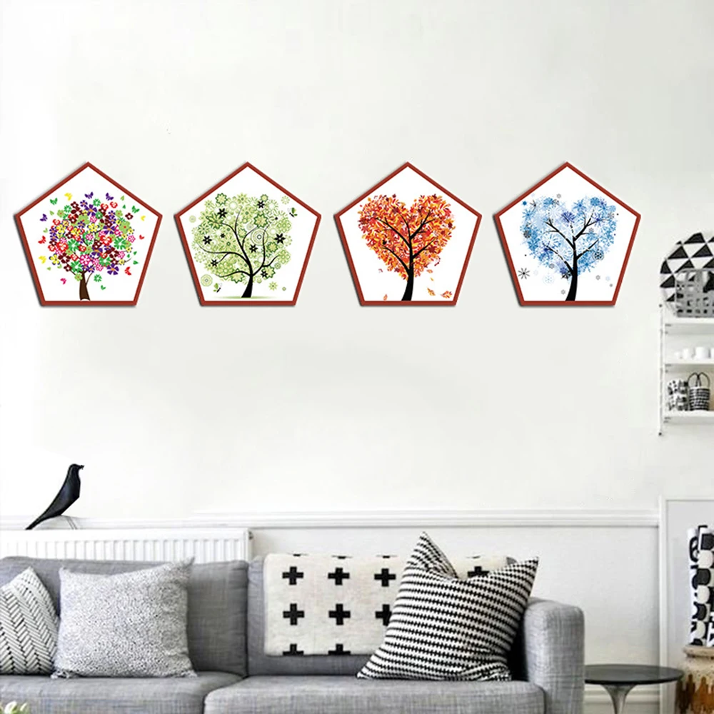 4 шт., 4 сезона, наклейки на стену с изображением большого дерева, для спальни, крыльца, гостиной, коридора, художественные наклейки, настенные наклейки, можно снять