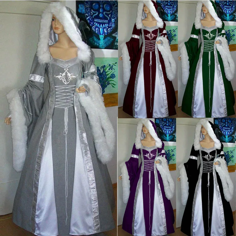 -КосплэйСредневековый Ренессанс винтажный готический с капюшономКостюмы Макси платье