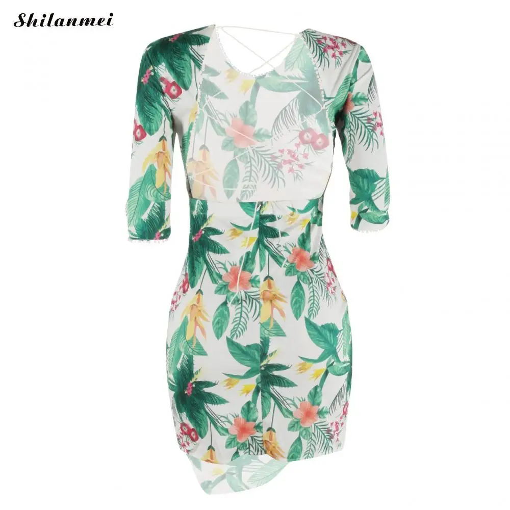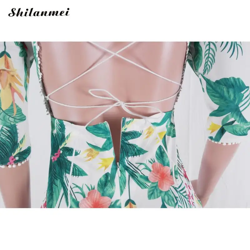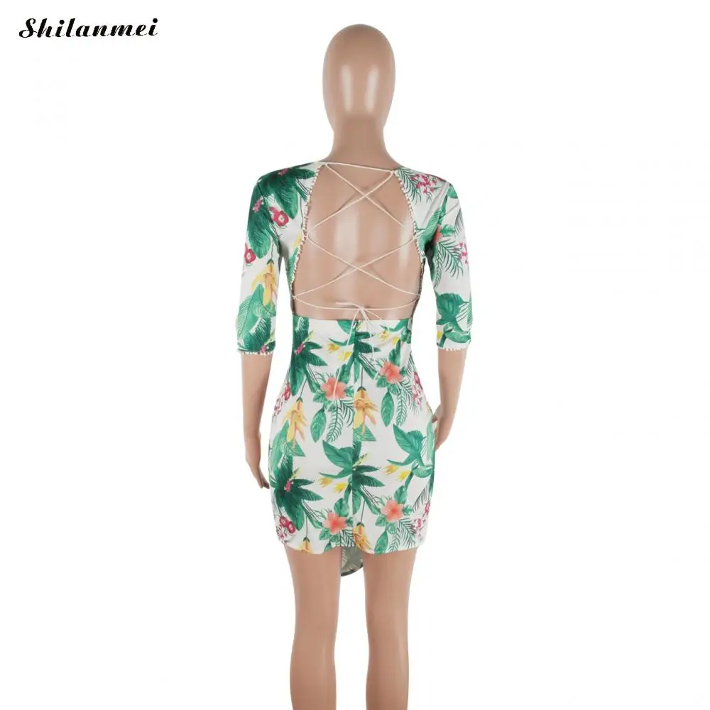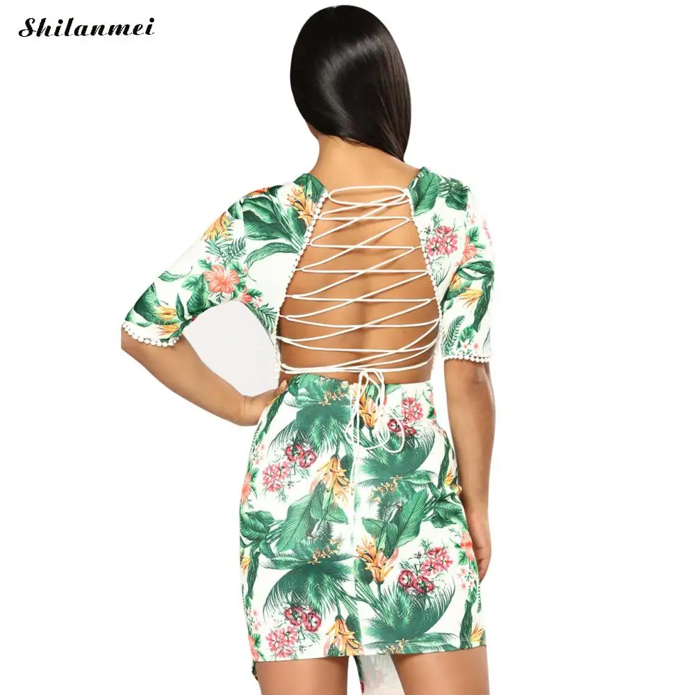 Полиэфирное цельнокроеное платье на шнуровке, дизайнерское, необычное, с открытой спиной и разного размера на выбор, с принтом, с рисунком листьев, белое, продается ПК
