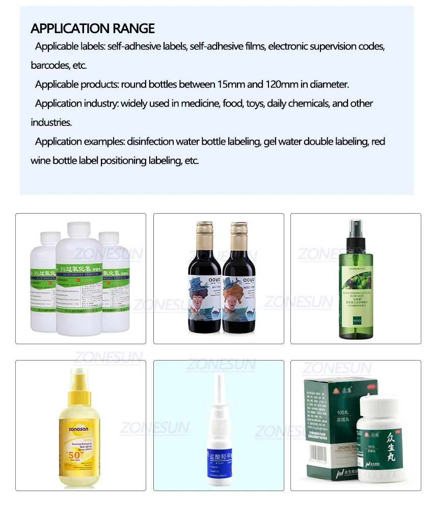 Примеры применения: круглая ПЭТ бутылка маркировки, пластиковые бутылки маркировки, пищевые банки и т. Д.