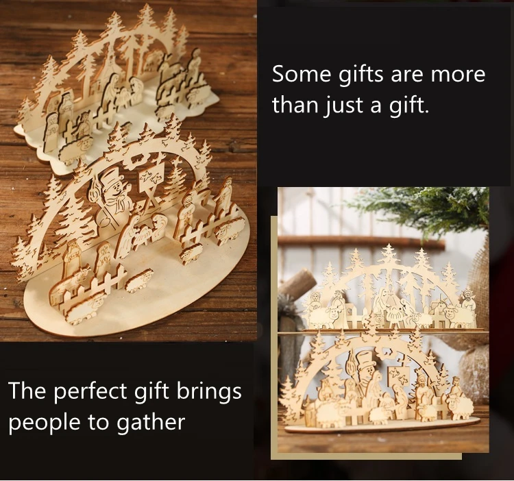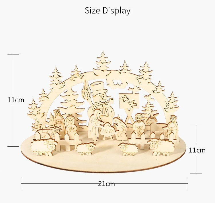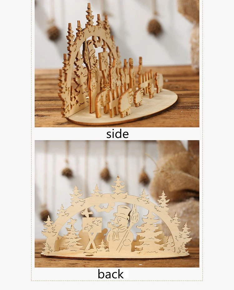 1. Изготовлен из натурального дерева, не легко поврежден и долговечен. 2. Экологически чистый материал, безопасный и нетоксичный, без запаха. 3. Это может создать теплую атмосферу и добавить дополнительный блеск вашему Рождеству. 4. Подходит для украшения стола, вечерние украшения. 5. Это благоприятных для чувства между родителями и детьми, а также культивирования детской ручной интерес.