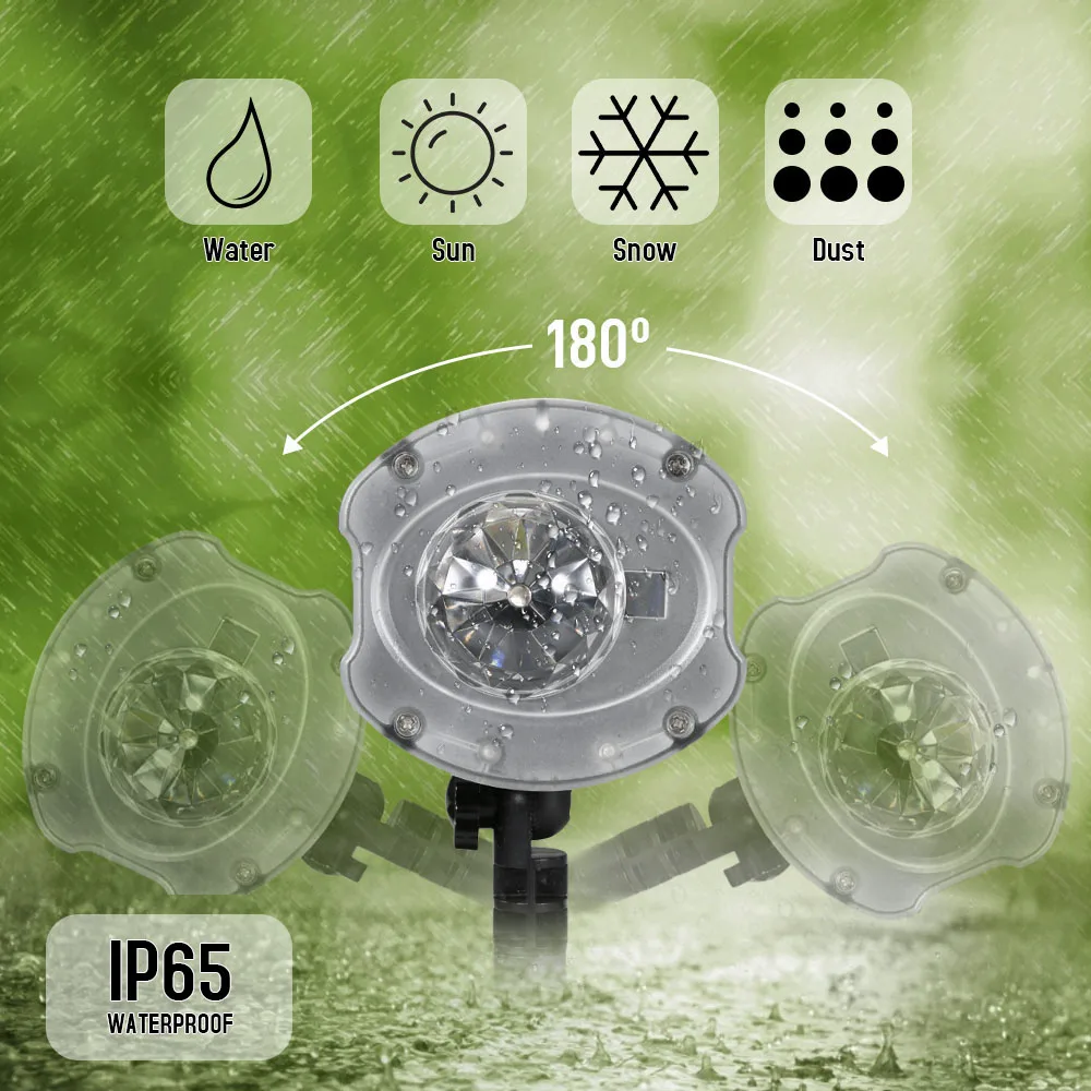 Двигатель работает автоматически. Угол проекции регулируется. Съемные и сменные крепления.