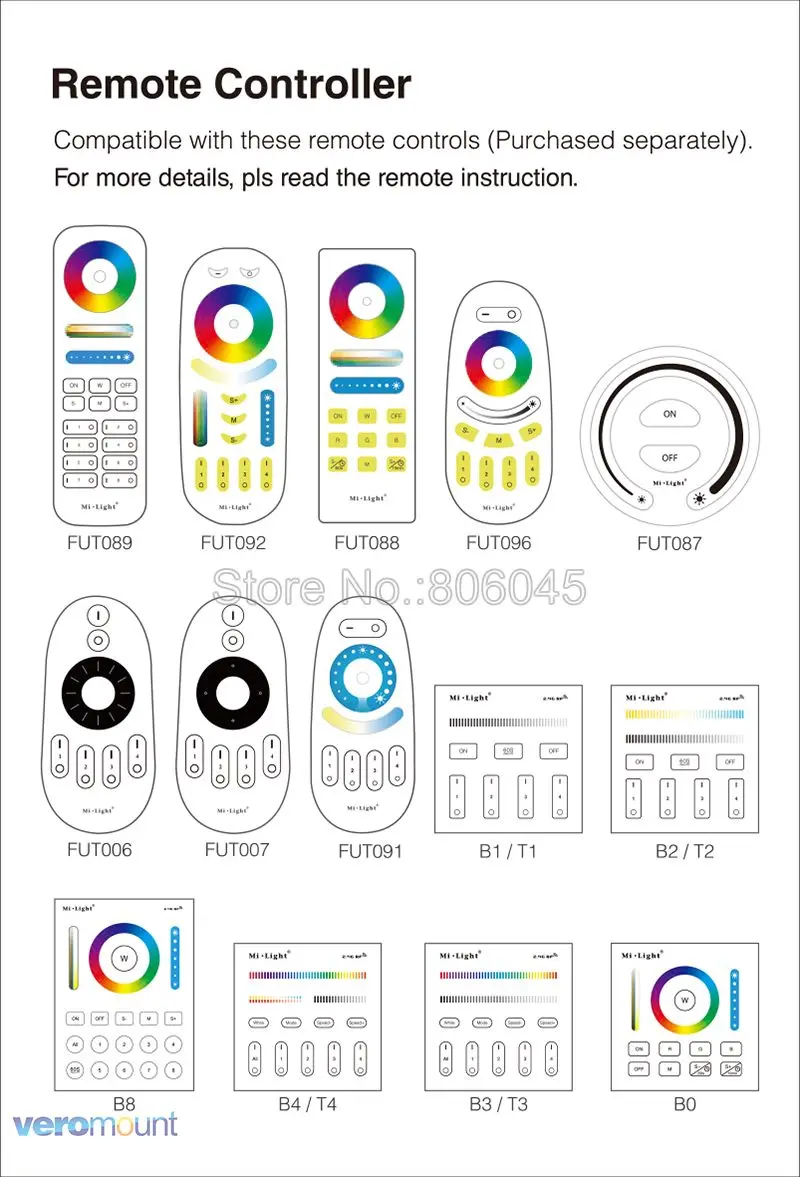 Из-за лимита листинга, этот список предлагает только части дистанционного управления, для более удаленного вы можете найти в нашем магазине с номером модели Milight.