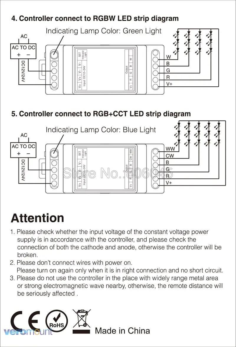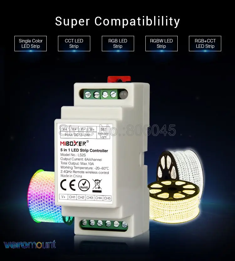LS2S 5 в 1 светодиодный контроллер может работать с одноцветными/cct / RGB / RGBW / RGB + CCT светодиодный полосы (DC12V / 24V).