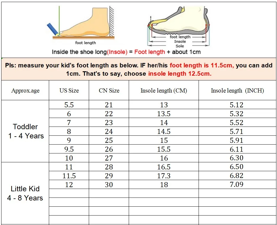 5.Что касается размера, Измерьте длину стопы ребенка в см или дюймах + 1 см или 0,03937 дюймаChВыберите соответствующий американский размер, спасибо