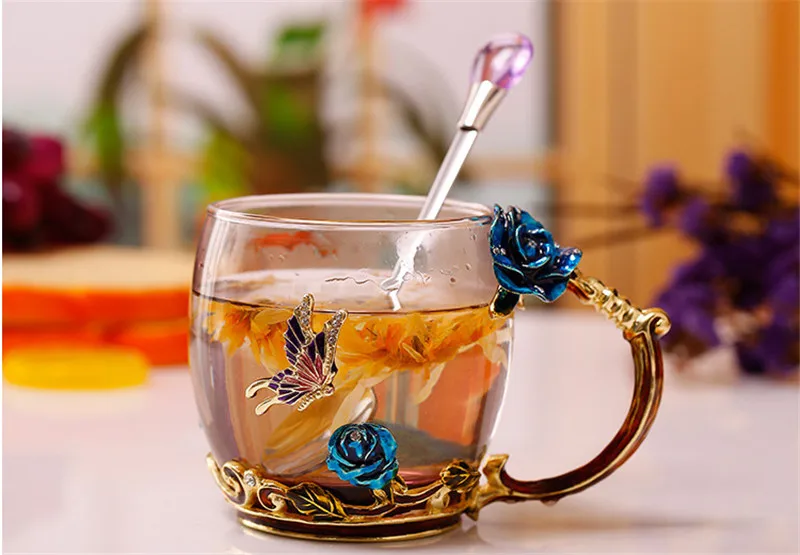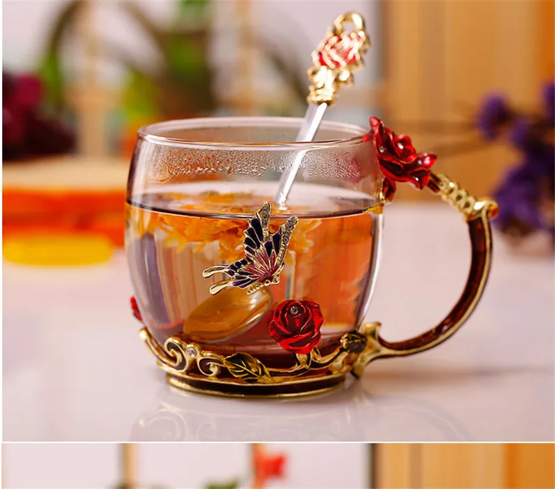 Хрустальная стеклянная кофейная кружка 3D Розы Цветочные чашки кружка с ложкой чай сок пиво молоко лучший подарок для влюбленных Рождество День рождения