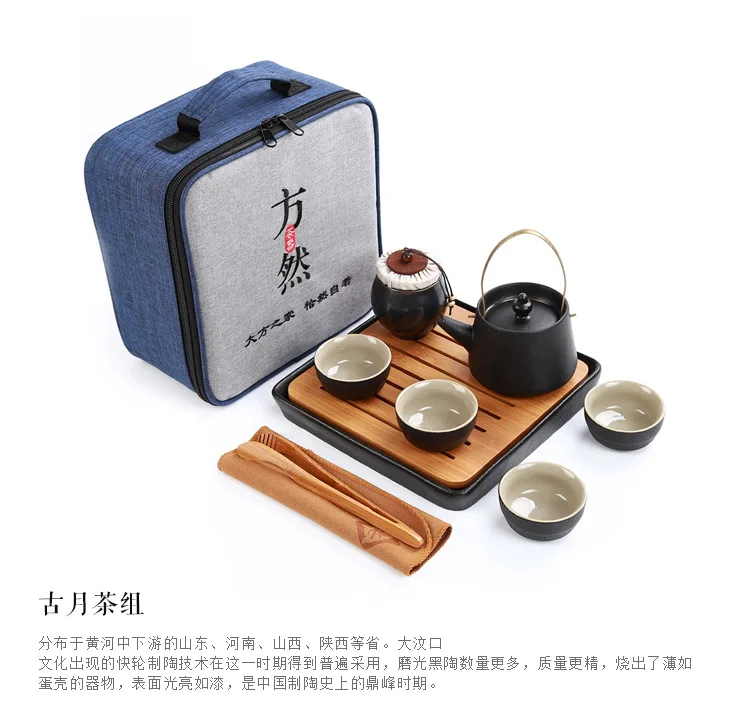 Чайный набор кунг-фу из 10 предметов, китайский дорожный чайный набор, керамический портативный чайник, фарфоровая чайная чашка Gaiwan, чайная церемония, чайный горшок с дорожной сумкой