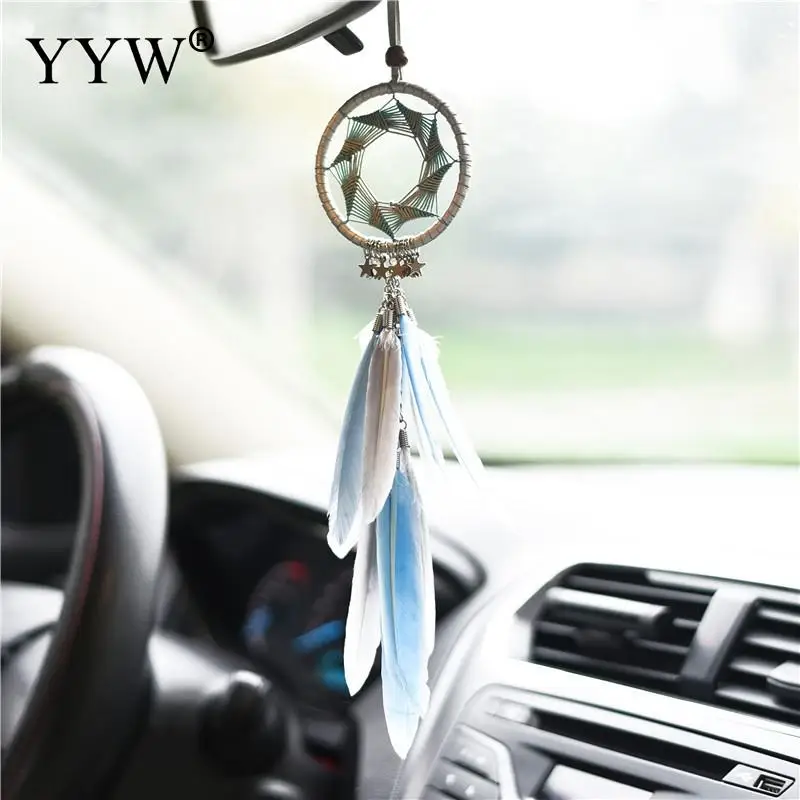 Small Handmade Feather Dream Catcher Keyring Keychain Decor Car Bag Hanging Decoration Pendant Wool Feather Dreamcatcher Gift, Sold By PC