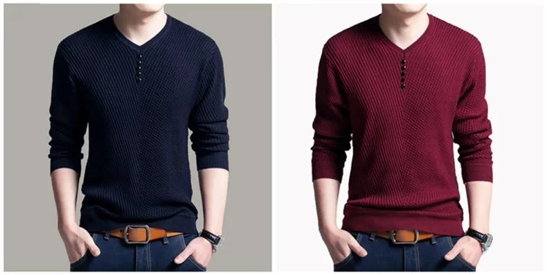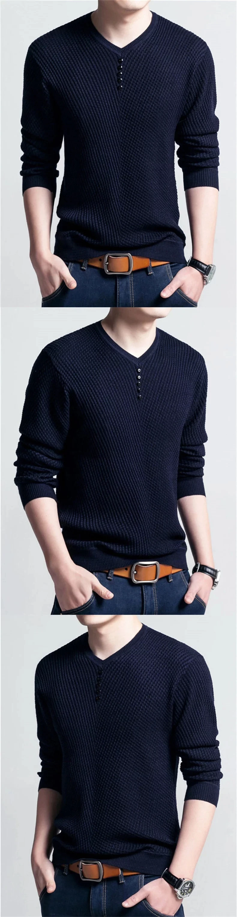 Мужской Повседневный пуловер IEMUH, приталенный свитер с v-образным вырезом и длинными рукавами, вязаный кашемировый шерстяной пуловер на осень