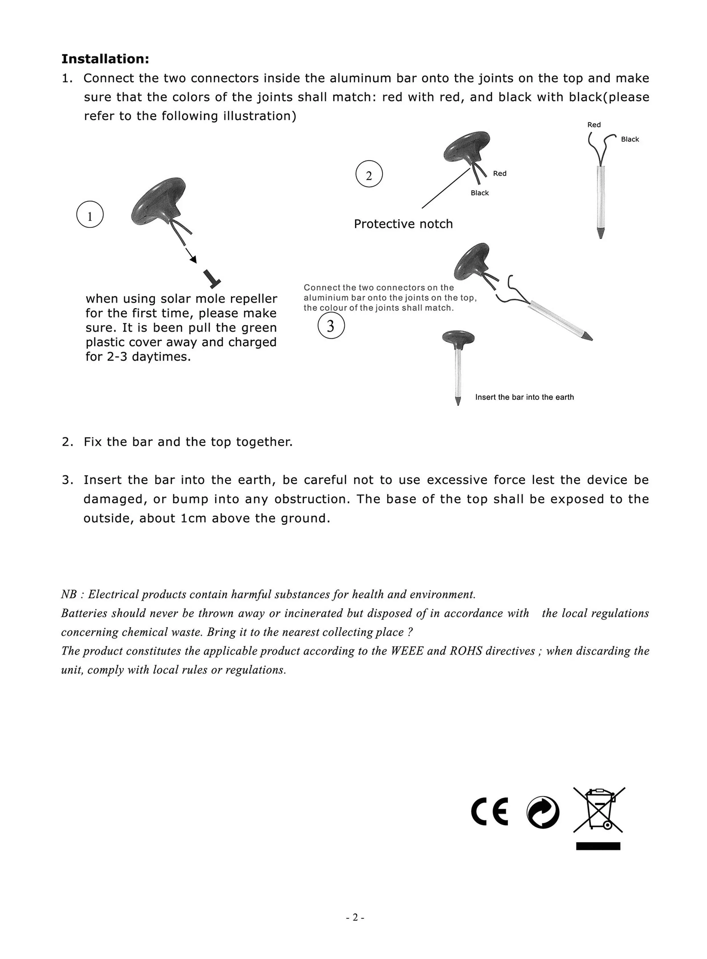 Часто ли вы беспокоитесь о том, что в саду или во дворе появятся грызуны? Или если вы уже встретили насекомых, когда вы заботились о своем саду, но у вас нет возможности сделать их из-за боязни? Устройство питается от солнечной энергии, делая ультразвуковые волны для отражения вредных грызунов (родинок, волов и т. Д.). Излучая ультразвуковые волны, солнечный отпугиватель Кротов очень эффективно погружается в глубину подземных грызунов. Ультразвуковые волны будут раздражать их, имитировать опасность и отталкивать их от облученной области. Передавая ультразвуковые волны каждые 30 секунд, солнечный отпугиватель Кротов эффективен в пределах площади 650 квадратных метров.