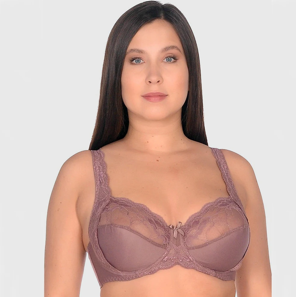 Универсальный бюстгалтер с кружевом на чашках и бретелях. Мягкая чашка красиво округляет грудь, боковая корректирующая вставка с уплотнителем дает дополнительную поддержку, а широкие регулируемые бретельки разгружают плечи. Большой выбор размеров и цетовых решений.