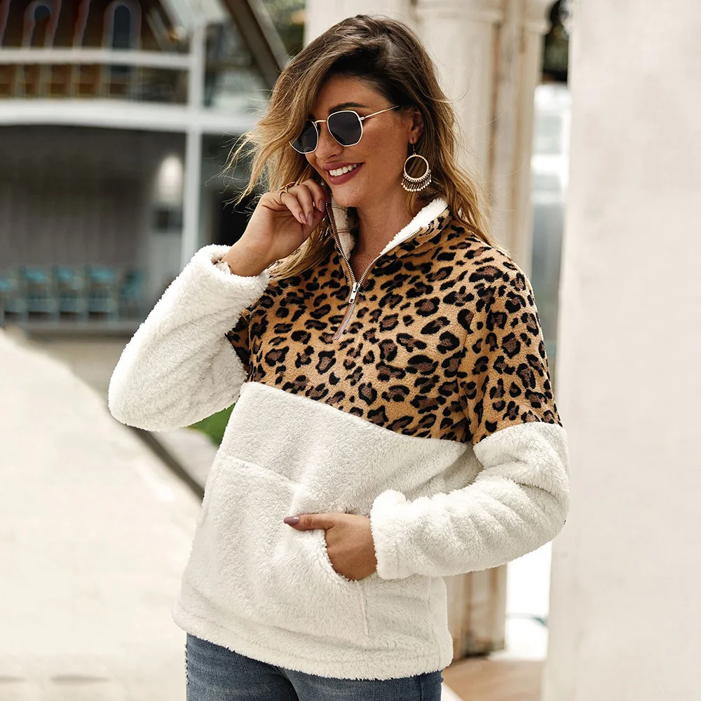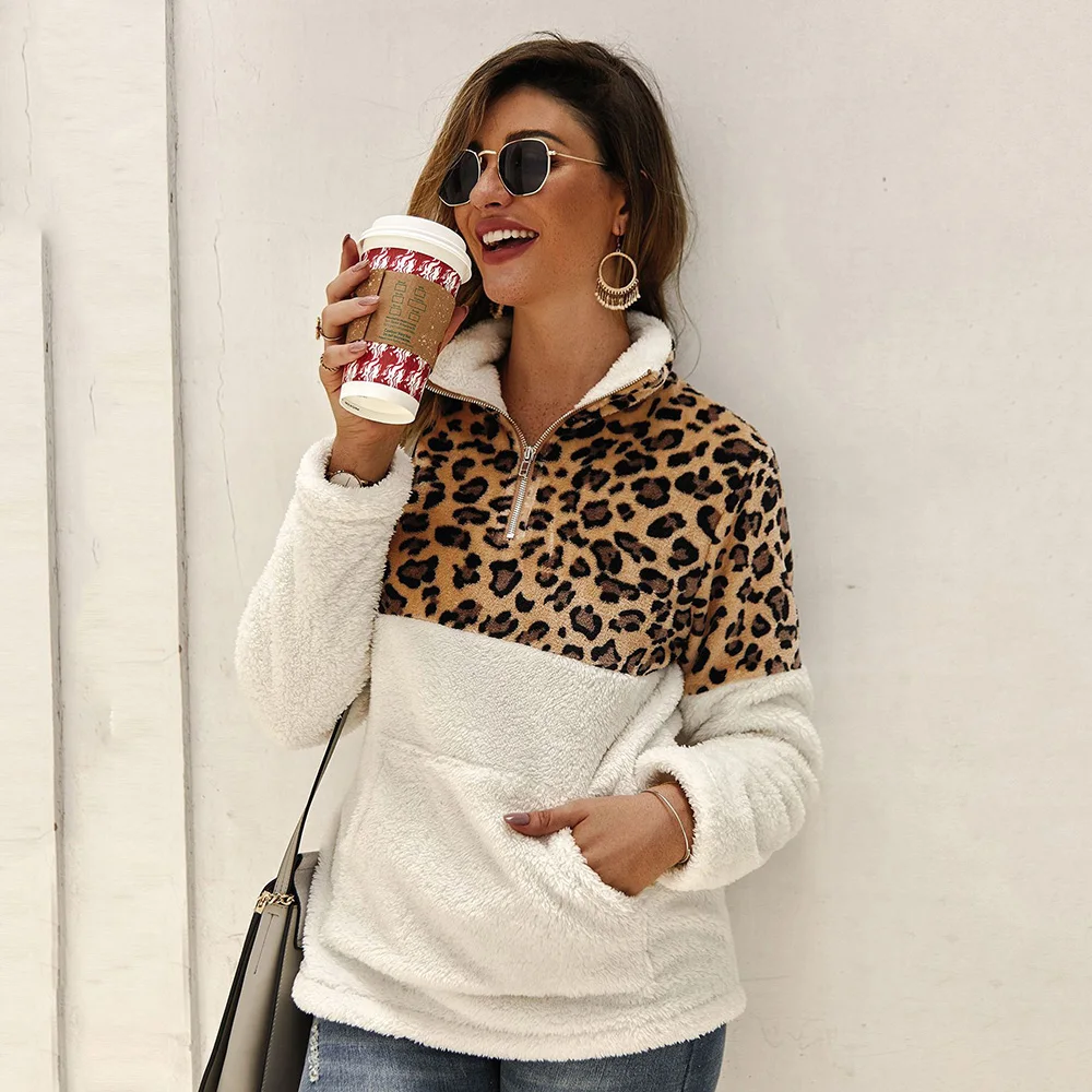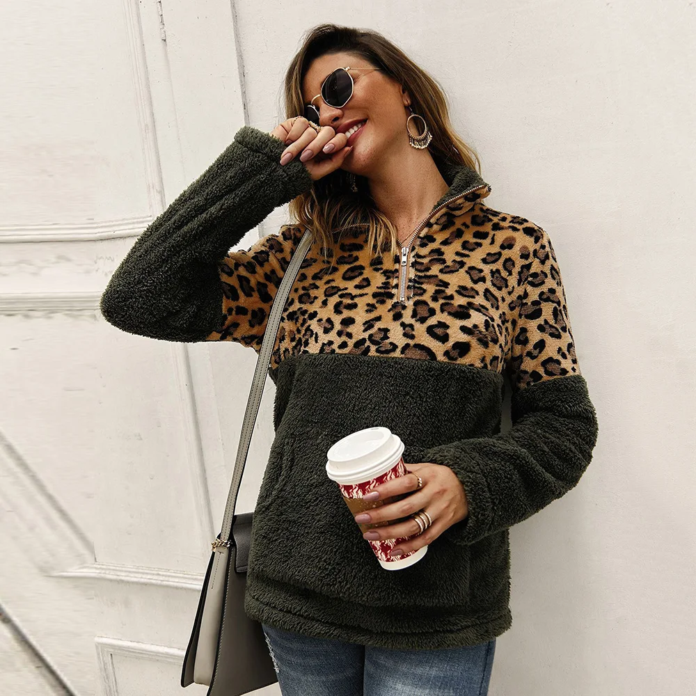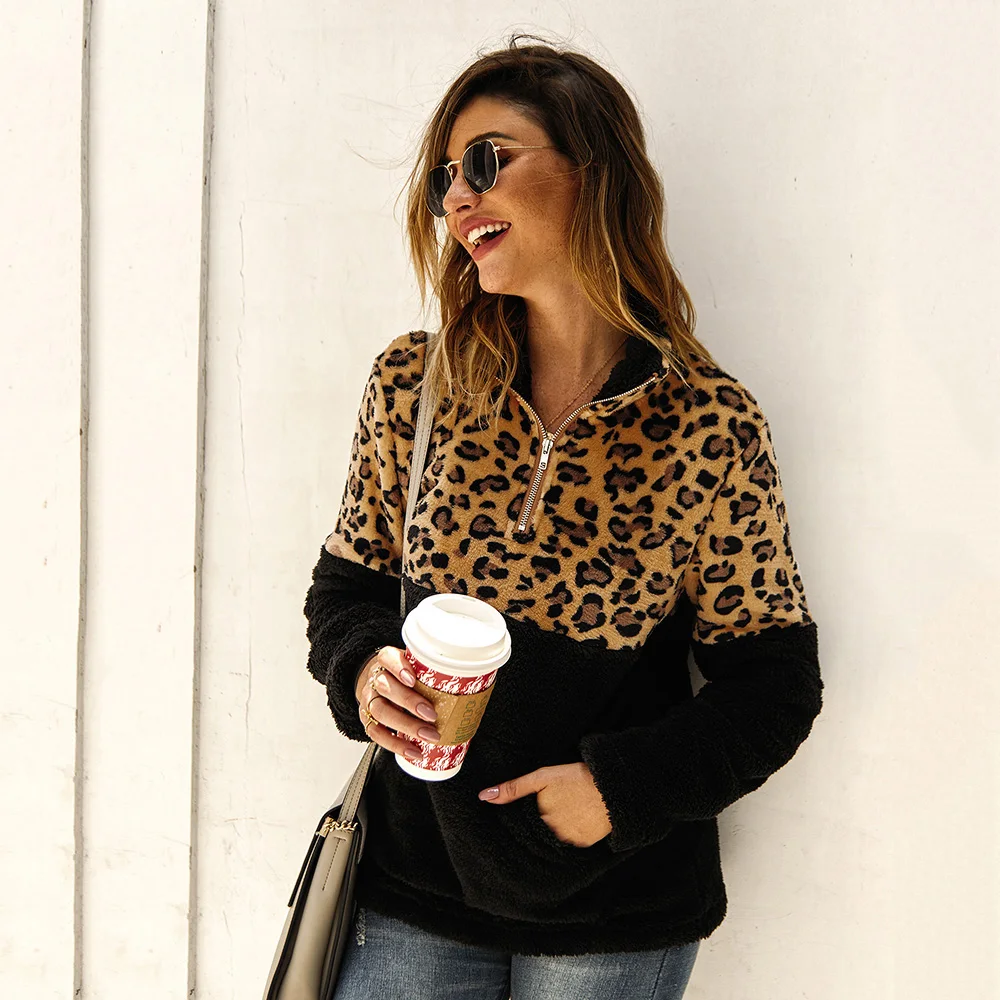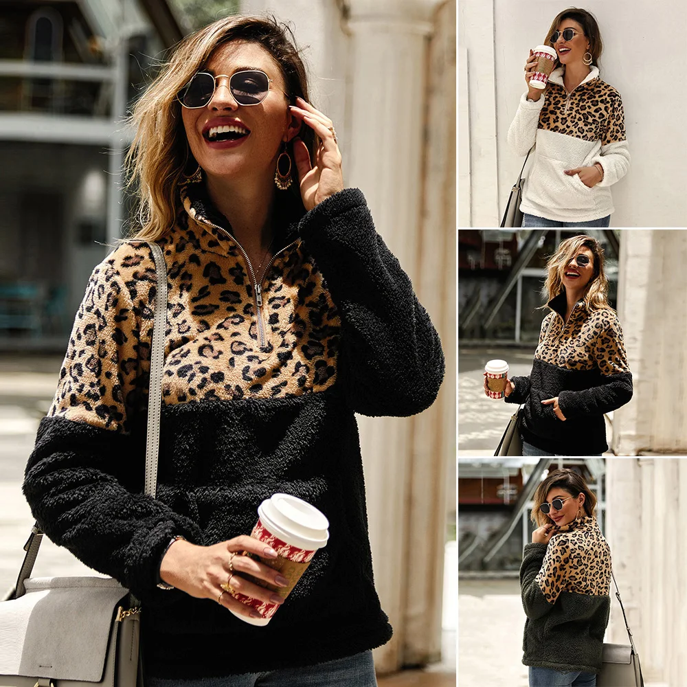 * Описание товара: женские топы; пуловер; сезон осень-зима; Новинка; леопардовая молния; карман; Высокий воротник; Модный