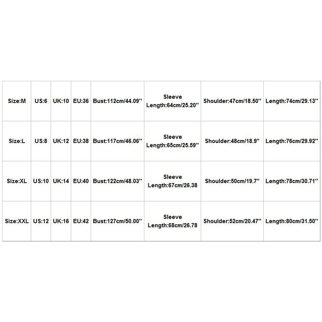 Размер Свяжитесь с нами Великобритания ЕС Обхват груди Рукав Длина Сумка на плечо Длина М 6 10 36 112 см/44,09'' Высота голенища 64 см; 25,20'' 47 см/18,50'' 74 см/29,13'' L 8 12 38 117 см/46,06'' 65 см/25,59'' 48 см/18,9" 76 см/29,92'' XL 10 14 40 122 см/48,03'' 67 см/26,38 50 см/19,7" 78 см/30,71'' XXL 12 16 42 127 см/50,00'' 68 см/26,78 52 см/20,47'' 80 см/31,50''