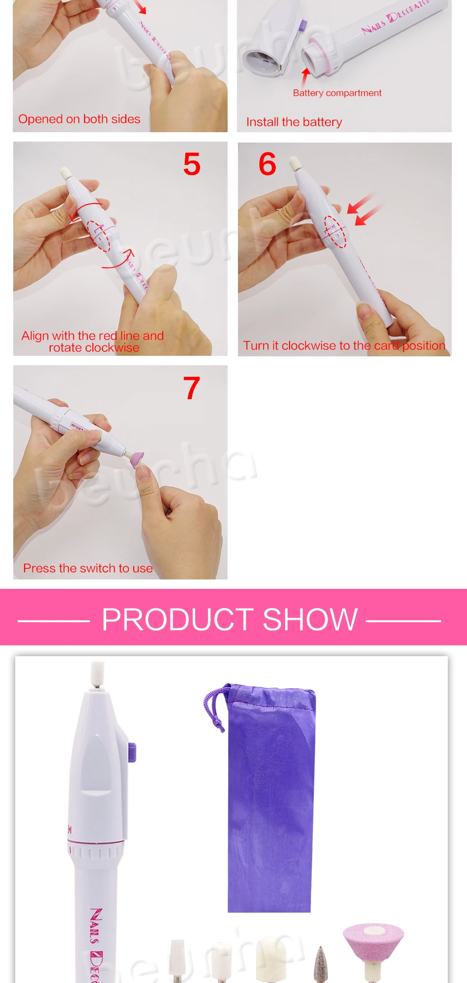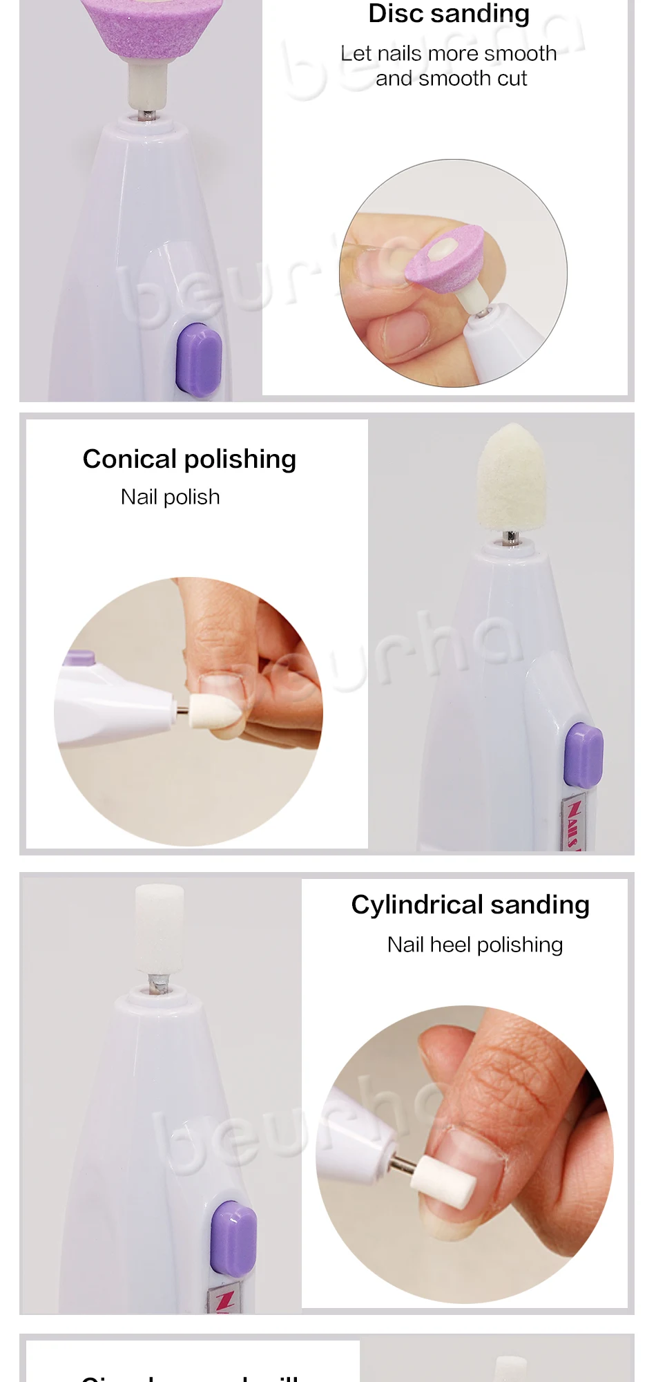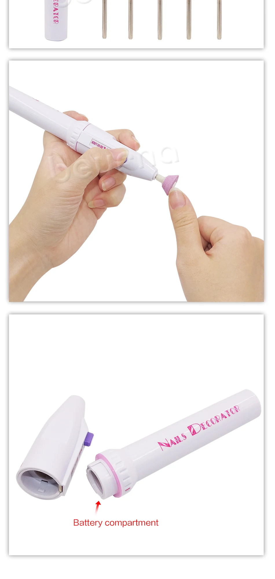 Высококачественный Набор для маникюра 5 в 1, набор для обрезки ногтей, Электрический формирователь для салона, инструмент для педикюра, новый многофункциональный дизайн ногтей Описание товара: Питание: 2 батарейки типа АА (не входят в комплект) Пять насадок в комплекте: Используется для файлов, формы, скульптуры и полиса Посылка: 1 х беспроводной формирователь салона 5 x насадок 1 x ромбовидный конус для удаления омертвевшей кожи и мозолей 1 x маленький шлифовальный конус-для кутикул и углов 1 x шлифовальный конус-разглаживает толстые ногти и рифленые поверхности 1 х войлочный конус для полировки и баффа 1 x Эмери голова к форме, лепить и обрезать 1 х сумка Обратите внимание: этот товар будет отправлен без розничной коробки, пожалуйста, не волнуйтесь, мы упакуем его перед отправкой, спасибо за понимание!