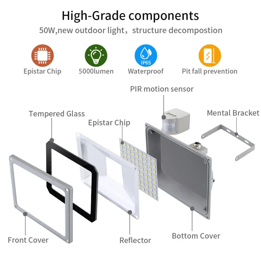 1. Детектор движения PIR: он автоматически включается при обнаружении движения в пределах 120 градусов и расстояние обнаружения до 50 футов/15 метров. После освещения в течение 10-480 секунд, он автоматически выключится.Подходит для баскетбольных площадок, футбольных полей, садов, дворов, парковок, отелей, местных пейзажей и т. Д."