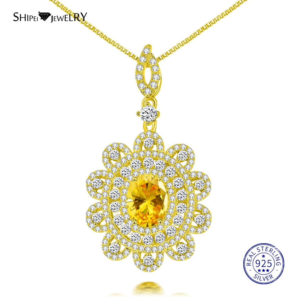 Женское ожерелье с подвеской Shipei, 100% Серебро 925 пробы, розовое золото, Овальный Сапфир, Изумрудный рубиновый цветок, подарок на день рождения