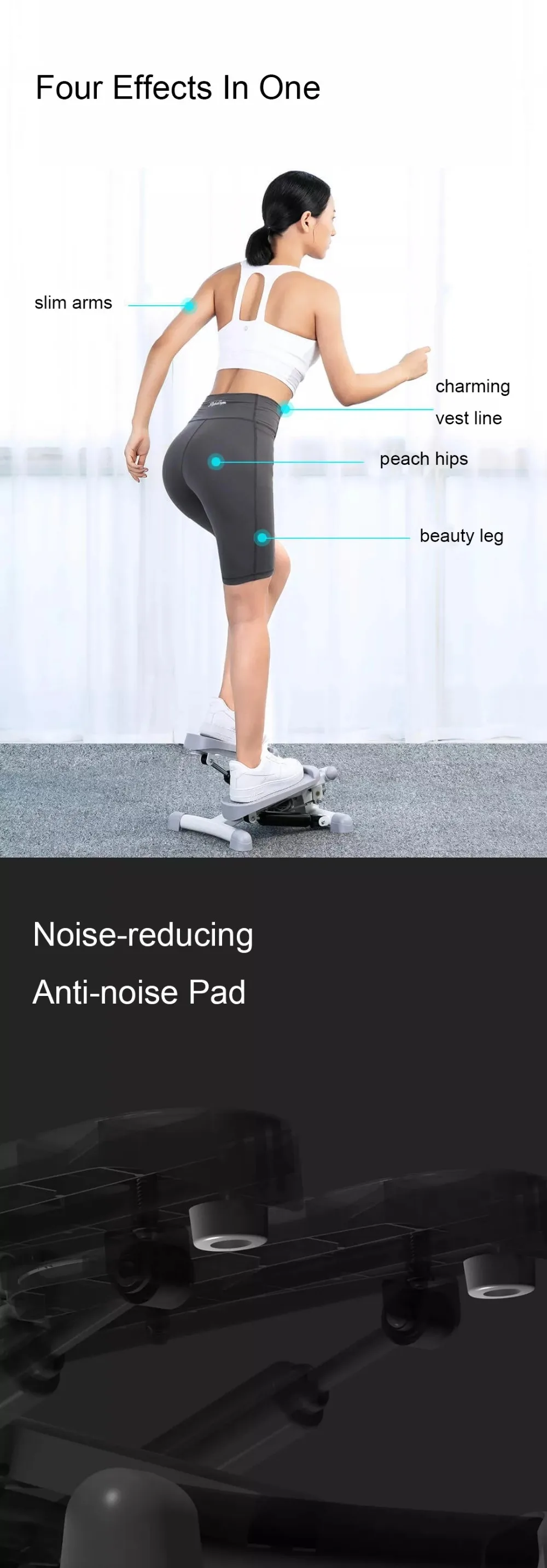 -Коррекция фигуры, четыре эффекта, бесшумное шумоподавление. -Миниатюрный, складной. Идеально подходит для использования в помещении, дома или в офисе. -Нижняя часть шагового двигателя соединена с эластичным тросом. В то же время рука, Плеч и спины может быть эффективно осуществлена в одно и то же время, и жира форма Одновременно выполняется для создания S кривой передней выпуклой задней части. -Четыре эффекта в одном. Он может тренировать Стройные руки, очаровательные линии жилета, персиковые бедра и красивые ноги. -Имеется шумоподавляющая антишумовая прокладка, которая эффективно защищает от шумов. -ЖК-Смарт-метр, мониторинг и запись количества шагов, выполняемых пользователем. -Эффективно защищает голые суставы и коленные суставы.
