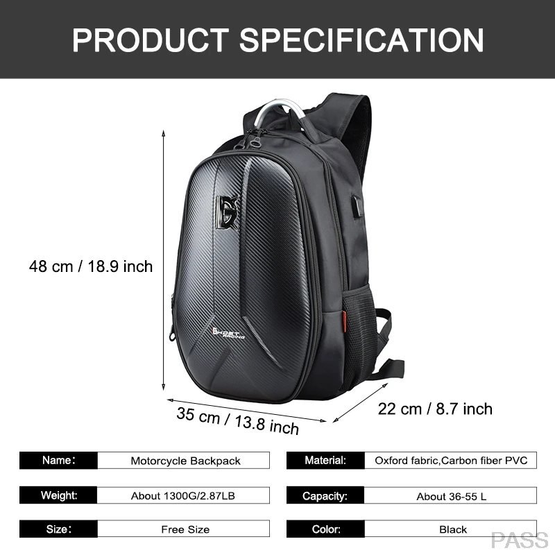 Название: рюкзак для мотоцикла Материал: ткань Оксфорд, АБС-пластик Вес: около 1300 г/2,87lb Емкость: около 36-55 л Размер: 52*40*17 (27) см/20,5*15,7*6,7 (10,6) дюймов Цвет: черный Применение: мотоцикл, Велоспорт, Спорт на открытом воздухе, скалолазание, мотоцикл, мотокросс и т. Д.